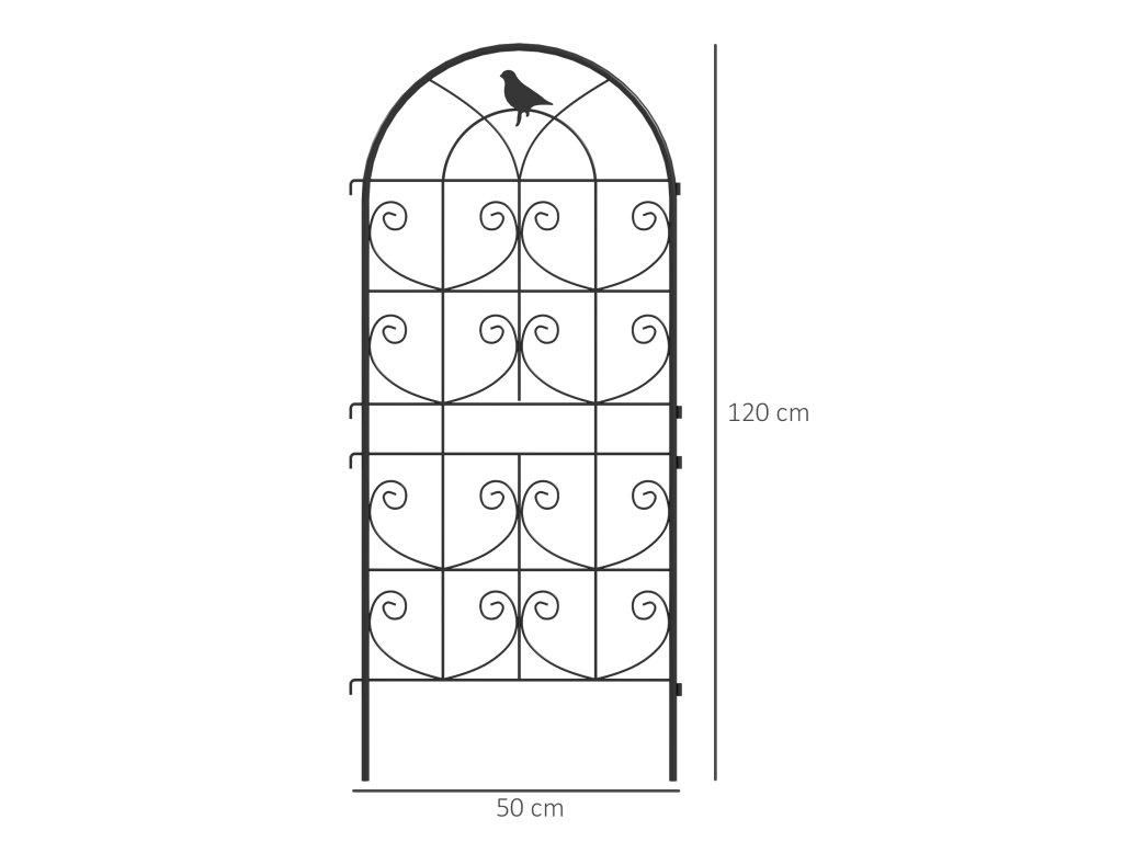 Outsunny kovová popínavá mřížka sada 2 nerezových podpěr s ptačím designem pro popínavé rostliny 50x120 cm černá