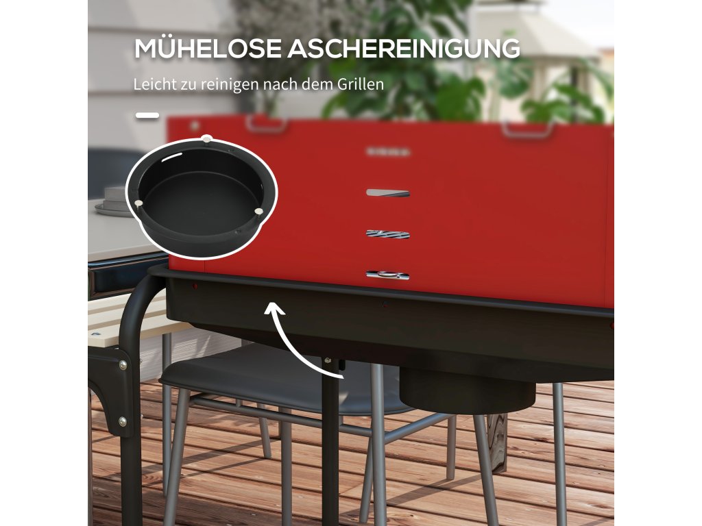 Vícenásobné úložiště: Přídavné boční a spodní police grilu na dřevěné uhlí nabízí dostatek místa pro grilovací příslušenství, servírovací talíře a další potřebné vybavení. Díky odnímatelnému lapači popela je čištění také extrémně snadné.