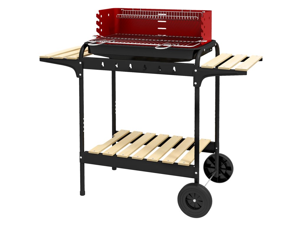 Specifikace grilovacího vozíku: Celkové rozměry: 103L x 47W x 95V cm. Nastavitelná výška grilu: 93/89/86/82/79 cm. Doporučené množství uhlí: méně než 1,5 kg. Nutná montáž.