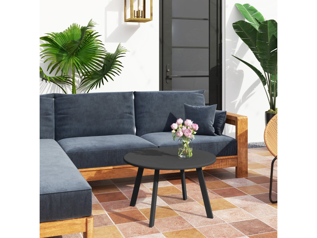Outsunny kovový odkládací stolek balkonový stolek kulatý konferenční stolek odolný proti povětrnostním vlivům zahradní stolek Ø70 x 42H cm černý