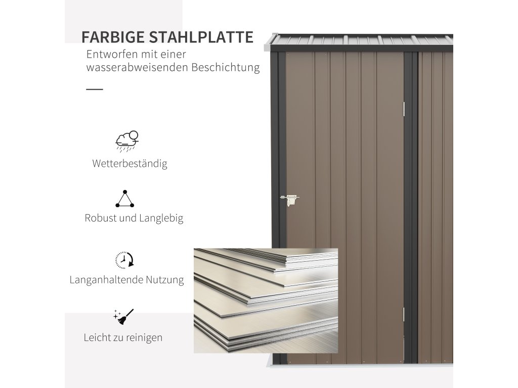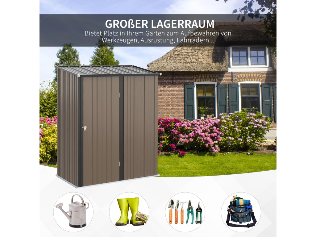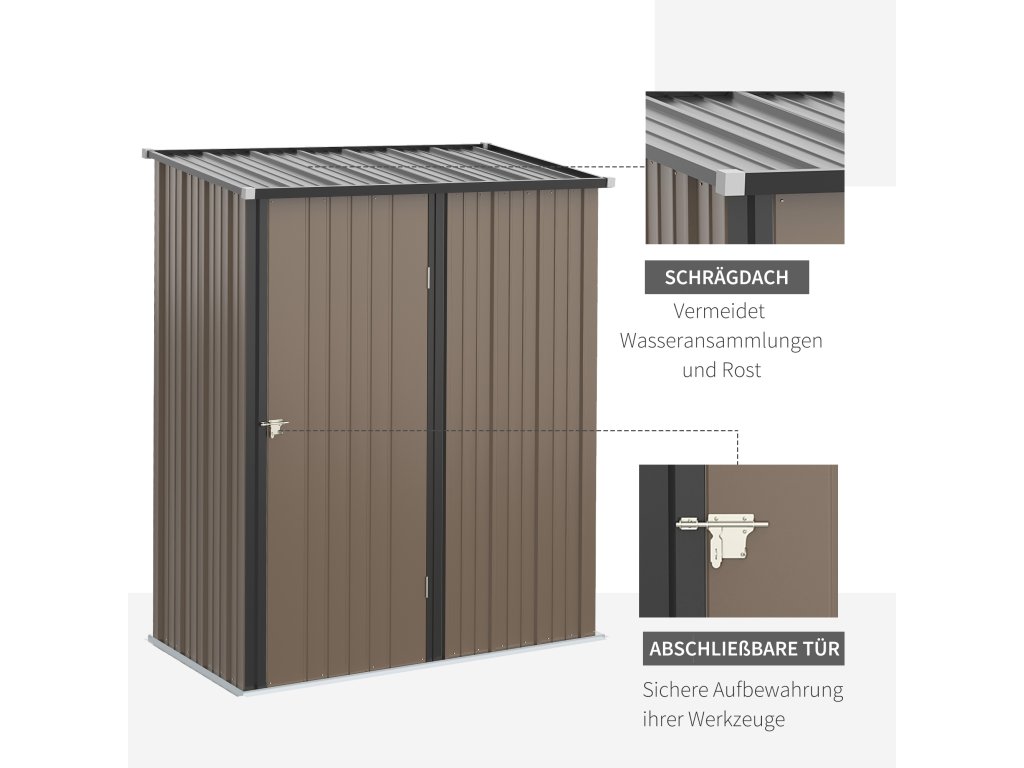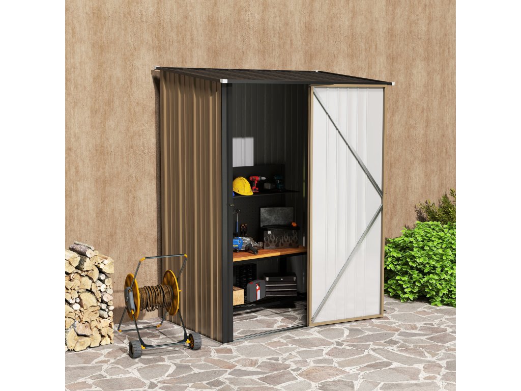 Outsunny kůlna na nářadí 1,34 m² kůlna na nářadí se střechou uzamykatelná Zahradní kůlna na nářadí z pozinkované oceli 161,5 x 94,5 x 196 cm Hnědá barva