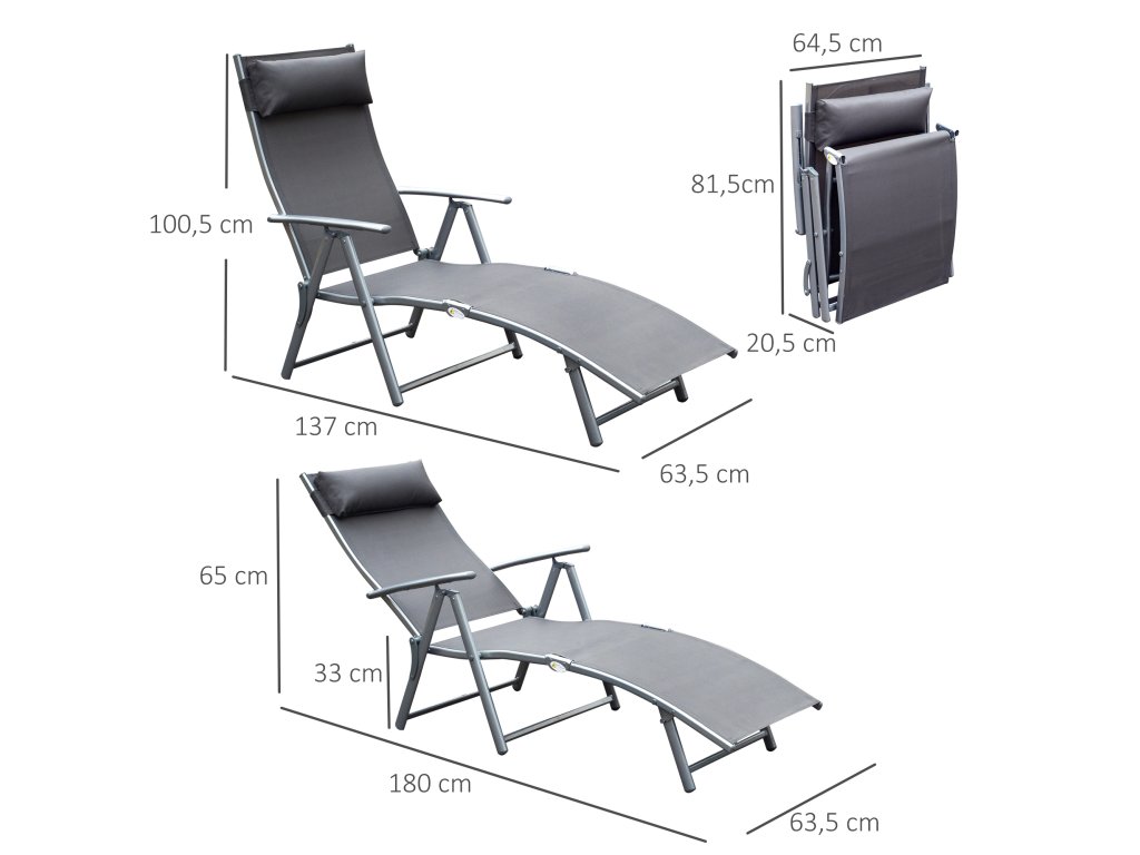 Udělejte si pohodlí na tomto robustním lehátku v prvotřídní kvalitě! Úhel opěradla lze nastavit v pěti stupních, takže můžete relaxovat v poloze vleže, vsedě nebo kdekoli mezi tím. Potah sedáku z prodyšné textilní tkaniny a dodávaný polštářek poskytují dodatečné pohodlí. Když se lehátko nepoužívá, lze jej složit, aby se ušetřilo místo, a pohodlně uložit.