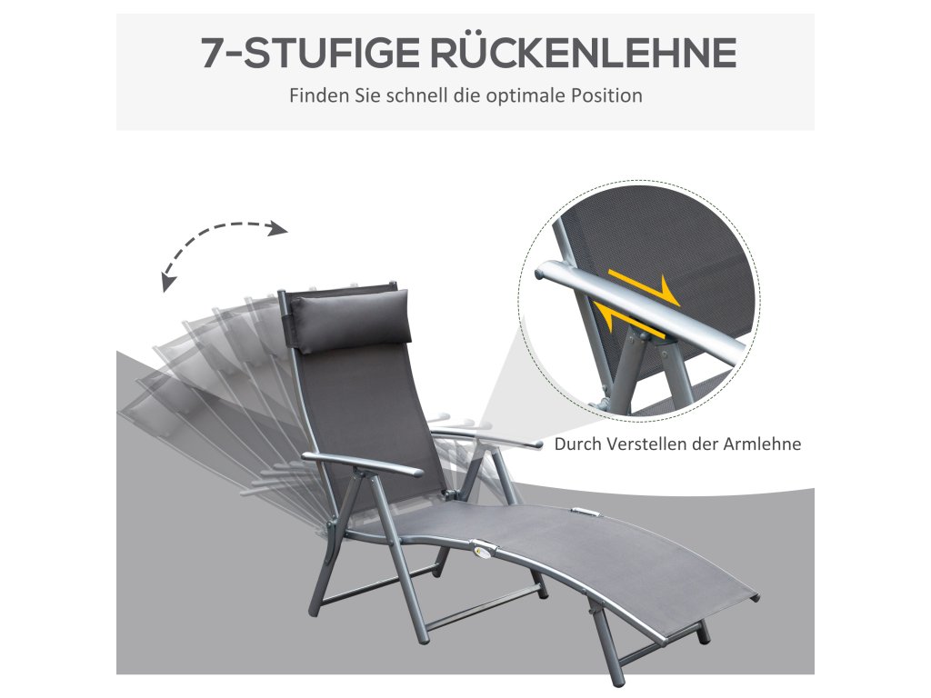 Outsunny lehátko skládací plážové lehátko s polštářem Lehátko se 7polohovým nastavitelným opěradlem Zahradní lehátko Relaxační lehátko Zahradní židle, max. nosnost 165 kg, pro zahradní dovolenou na pláži u bazénu, šedá barva