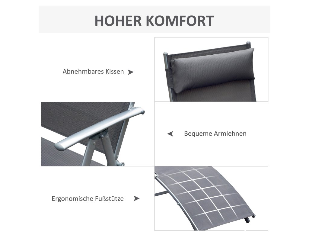 - Pohodlí při sezení a sklápění: Potah sedadla z prodyšné textilie Textilene je pohodlný a snadno se čistí. Na tomto pohodlném lehátku můžete zůstat v pohodě i v horkých letních dnech.