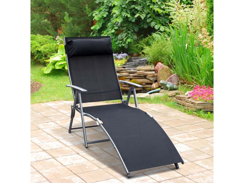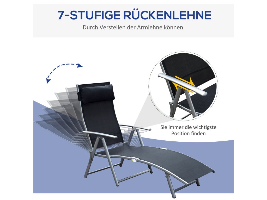 Outsunny lehátko skládací plážové lehátko s polštářem Lehátko se 7polohovým nastavitelným opěradlem Zahradní lehátko Relaxační lehátko Zahradní židle, max. nosnost 165 kg, pro zahradní dovolenou venku, černá barva