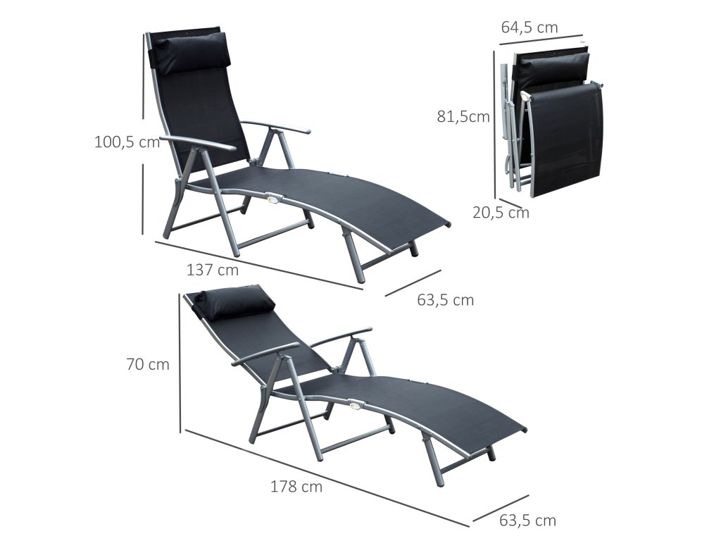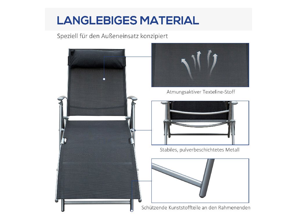 Udělejte si pohodlí na tomto robustním lehátku v prvotřídní kvalitě! Úhel opěradla lze nastavit v pěti stupních, takže můžete relaxovat v poloze vleže, vsedě nebo kdekoli mezi tím. Potah sedáku z prodyšné textilní tkaniny a dodávaný polštářek poskytují dodatečné pohodlí. Když se lehátko nepoužívá, lze jej složit, aby se ušetřilo místo, a pohodlně uložit.