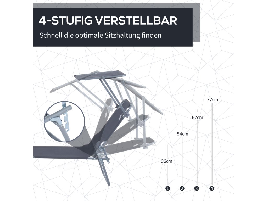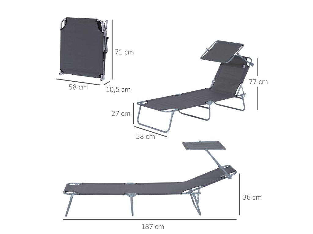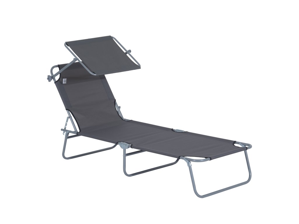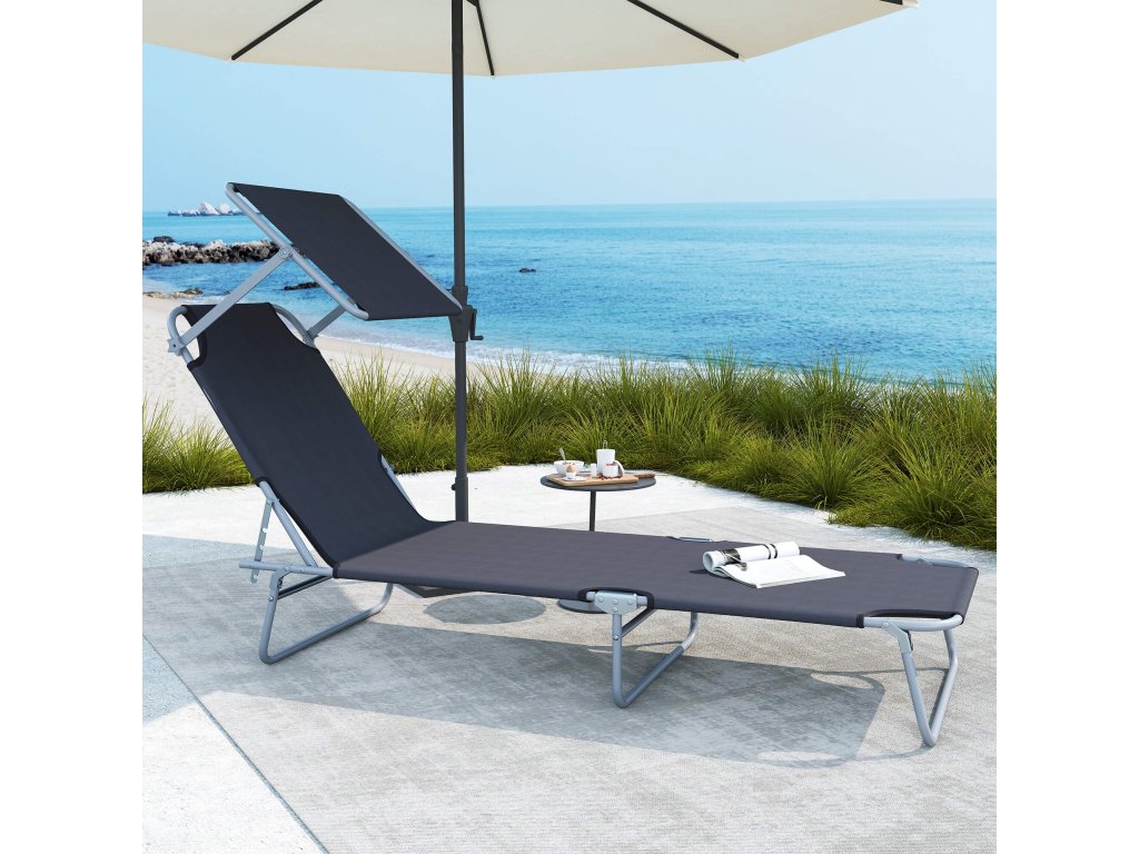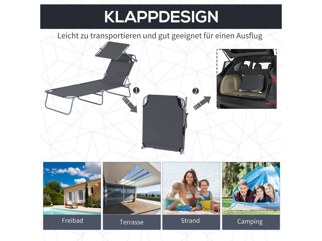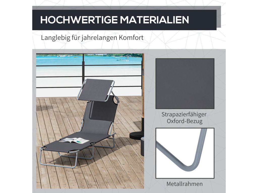 Outsunny lehátko skládací zahradní lehátko s ochranou proti slunci wellness lehátko se čtyřsměrně nastavitelným opěradlem plážové lehátko s nosností až 120 kg vhodné na zahradu, balkon a k bazénu, 6 barev (šedá)