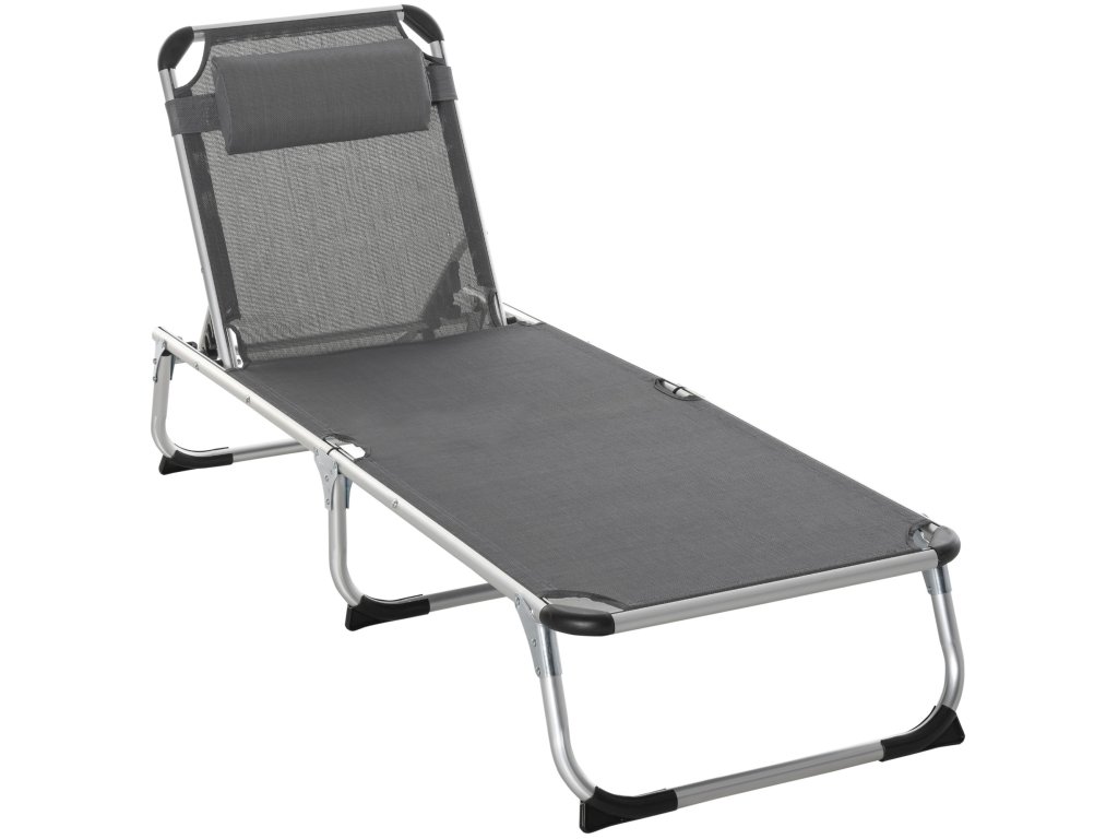 Outsunny lehátko skládací zahradní lehátko s polštářem Lehátko se 4stupňovým nastavitelným opěradlem Kempingové lehátko s nosností až 120 kg pro venkovní park, zahradu, šedá barva
