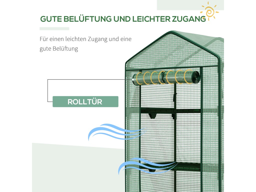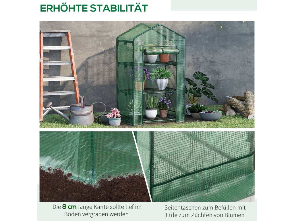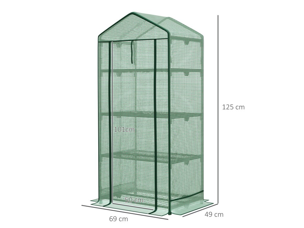 S tímto kompaktním mini skleníkem s víceúrovňovými policemi od společnosti Outsunny můžete své zelené prsty využít kdekoli. Rám je vyroben z robustního kovu, aby balkonový skleník zůstal vzpřímený a stabilní po celý den, a odolný plastový kryt chrání vaše rostliny uvnitř před chladem. Tento rozmnožovací skleník je skvělou volbou, pokud chcete začít pěstovat vlastní produkty.
