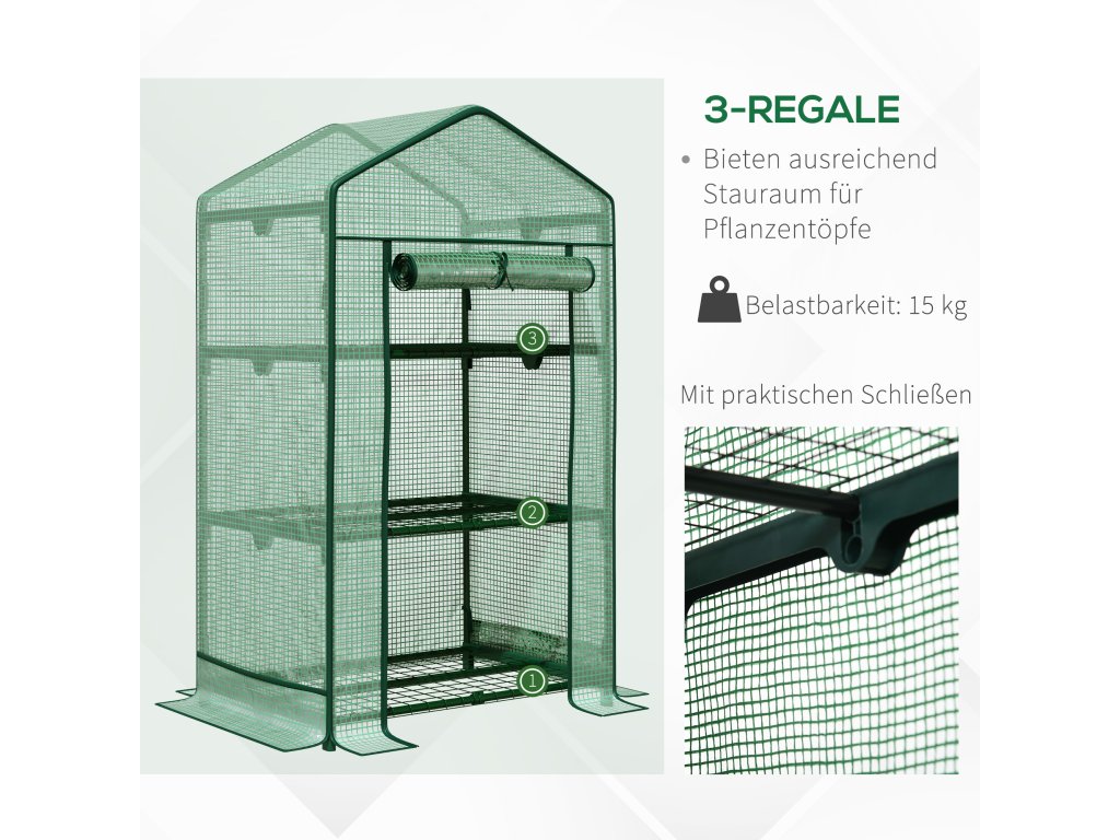 - PRAKTICKÉ PLOCHY: Ve fóliovém skleníku je několik prostorných polic, které poskytnou vašim rostlinám dostatek prostoru pro růst a prospívání. o bezpečné upevnění polic se stará 8 přezek.