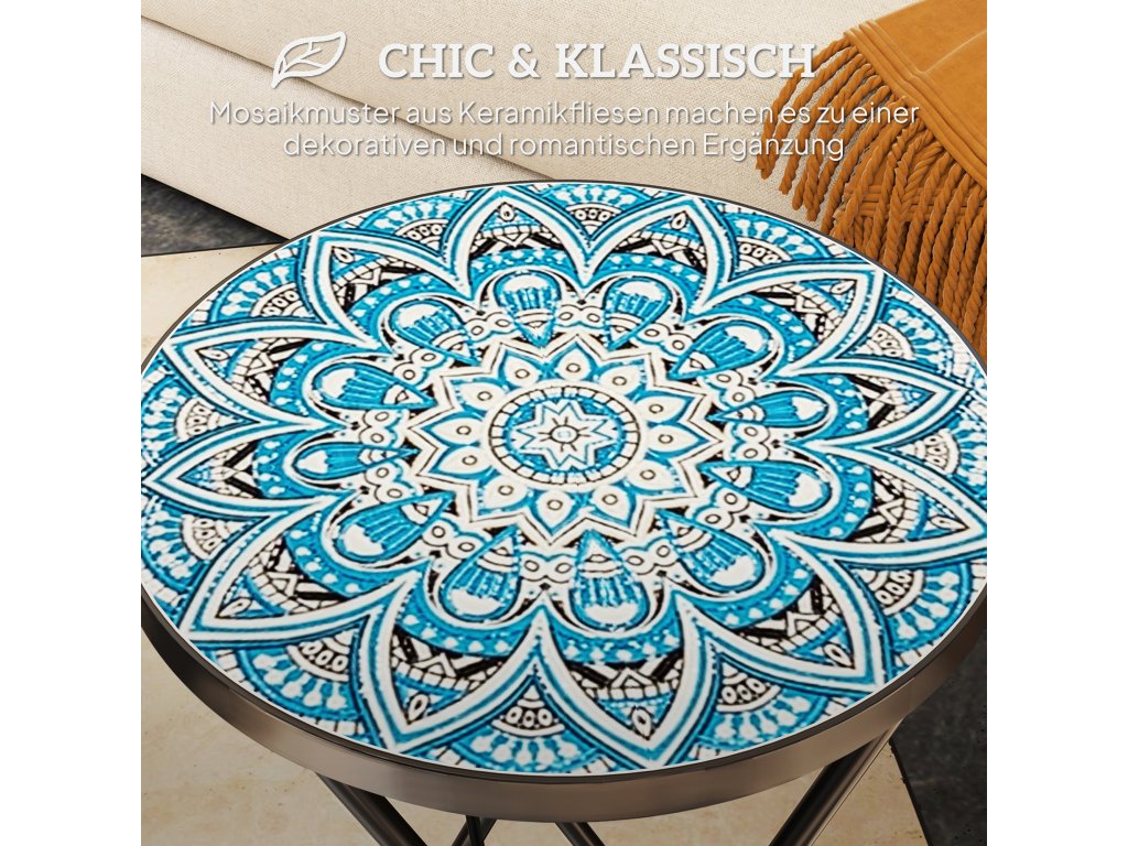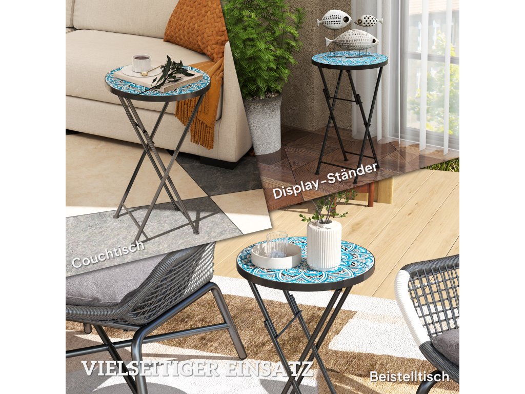- Barevný mozaikový půvab: Balkonový stolek má zářivou keramickou desku s barevným vzorem, ideální jako bistro stolek nebo zahradní stolek, který vylepší každý venkovní i vnitřní prostor