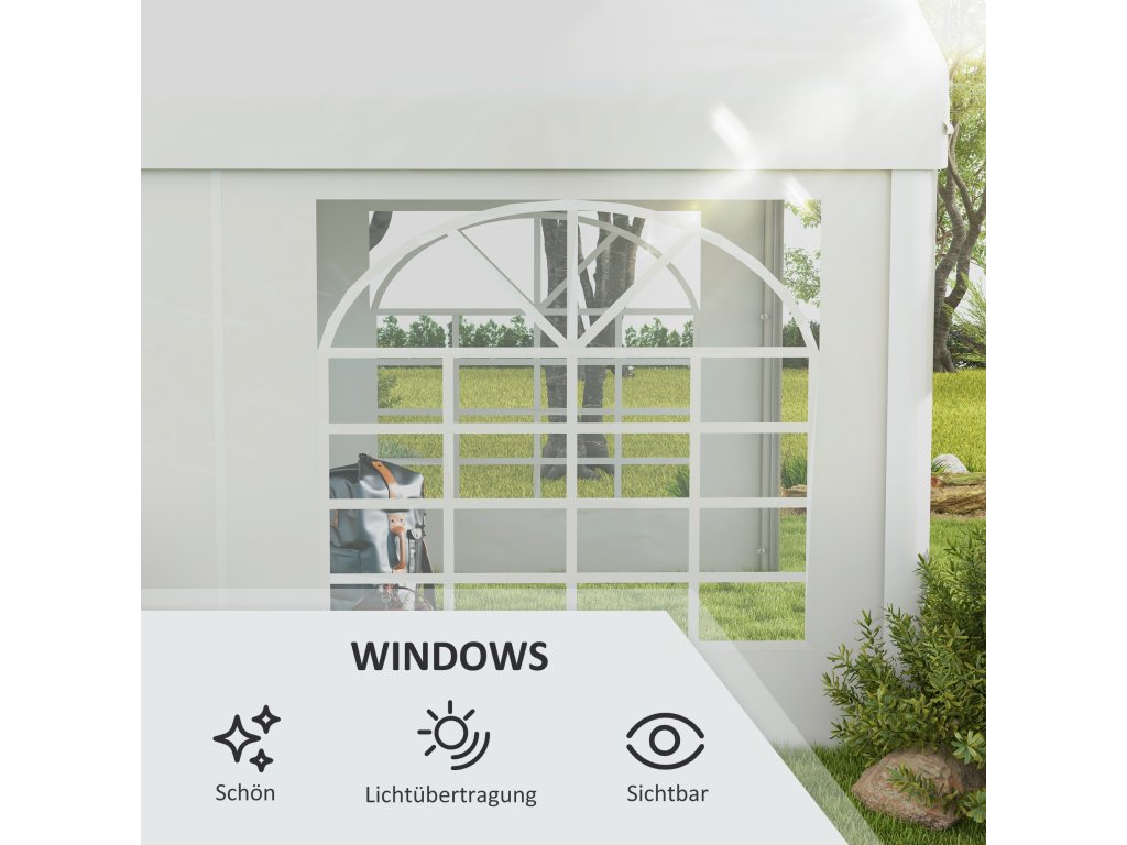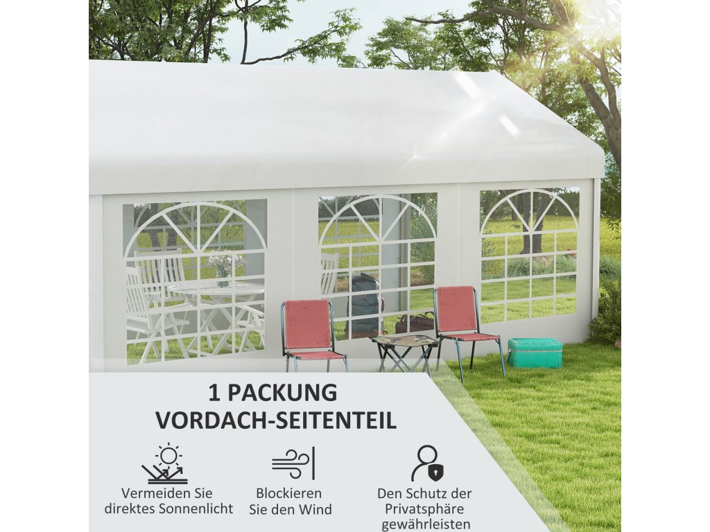- Náhradní stěna pro párty stan: Dodejte svému venkovnímu přístřešku příjemné vylepšení pomocí naší boční stěny. Vhodná pro párty stany nebo přístřešky pro auta s délkou strany 6 m
