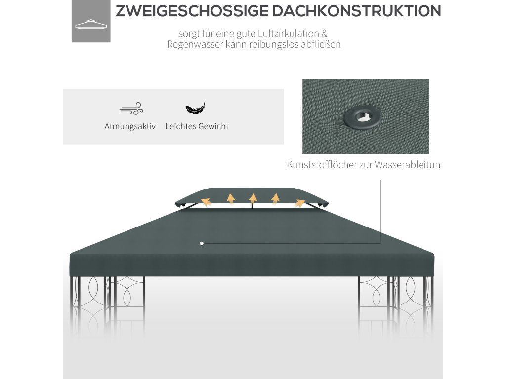 Outsunny náhradní střecha pro altán 3 x 4 m vodoodpudivá střecha altánu s dvojitou střechou Náhradní kryt pro zahradní altán náhradní díly z tkaniny Polyestet šedé uhlí