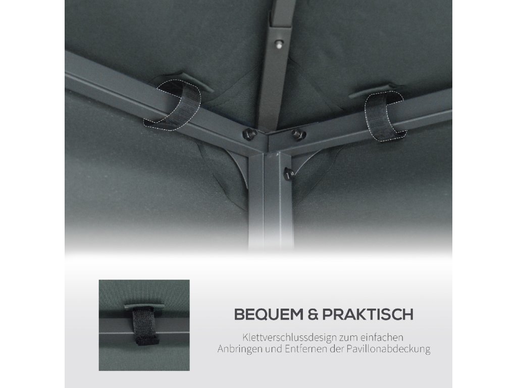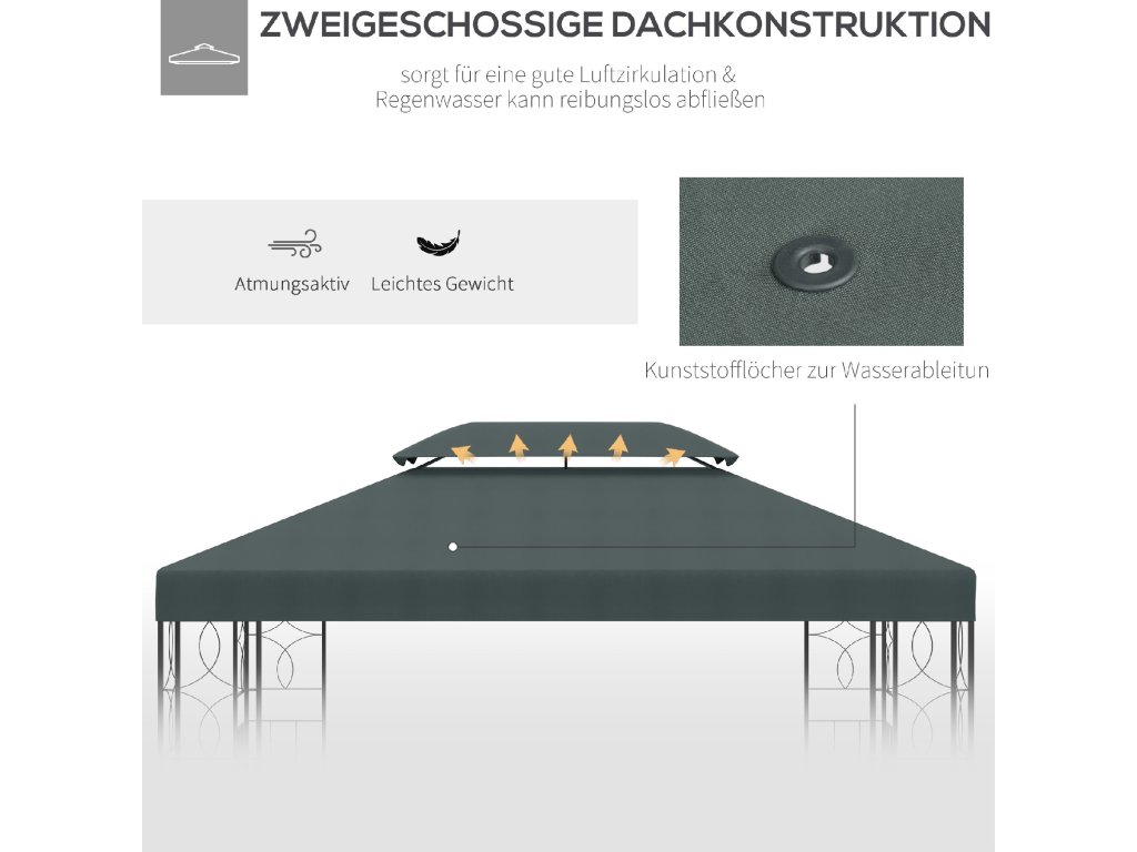 - Kvalitní náhradní střecha: Tato dvojitá střecha je vhodná pro zahradní altán se základní plochou 3 x 3 m.