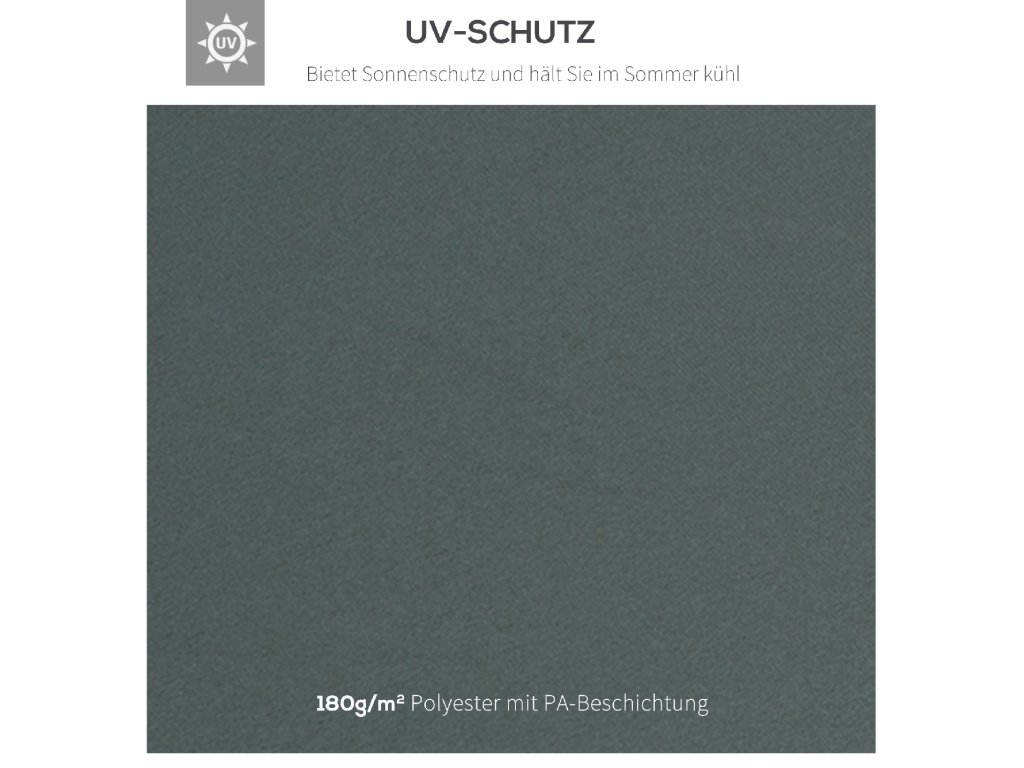 - Vodoodpudivá: Tato střecha altánu je vyrobena z vysoce kvalitního polyesteru o hmotnosti 180 g/m² a nabízí ideální ochranu před škodlivým UV zářením.