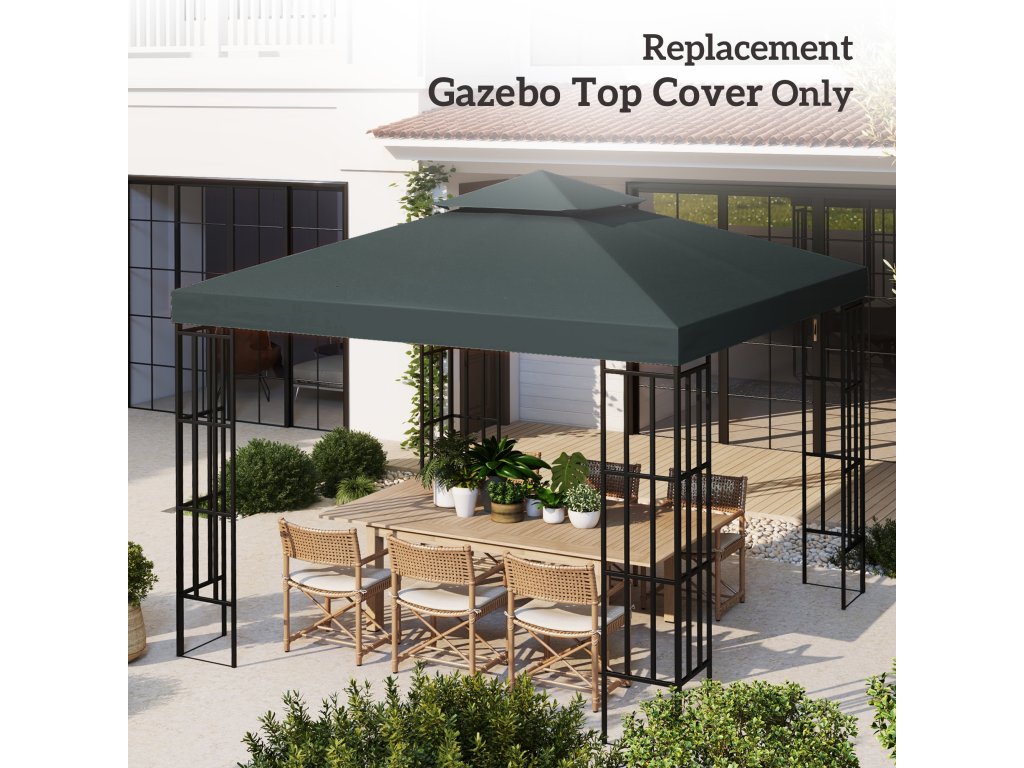 Outsunny náhradní střecha pro altán 3x3m vodoodpudivá střecha altánu pro kovový altán náhradní střecha zahradního altánu party stan zahradní stan polyester uhlí šedá