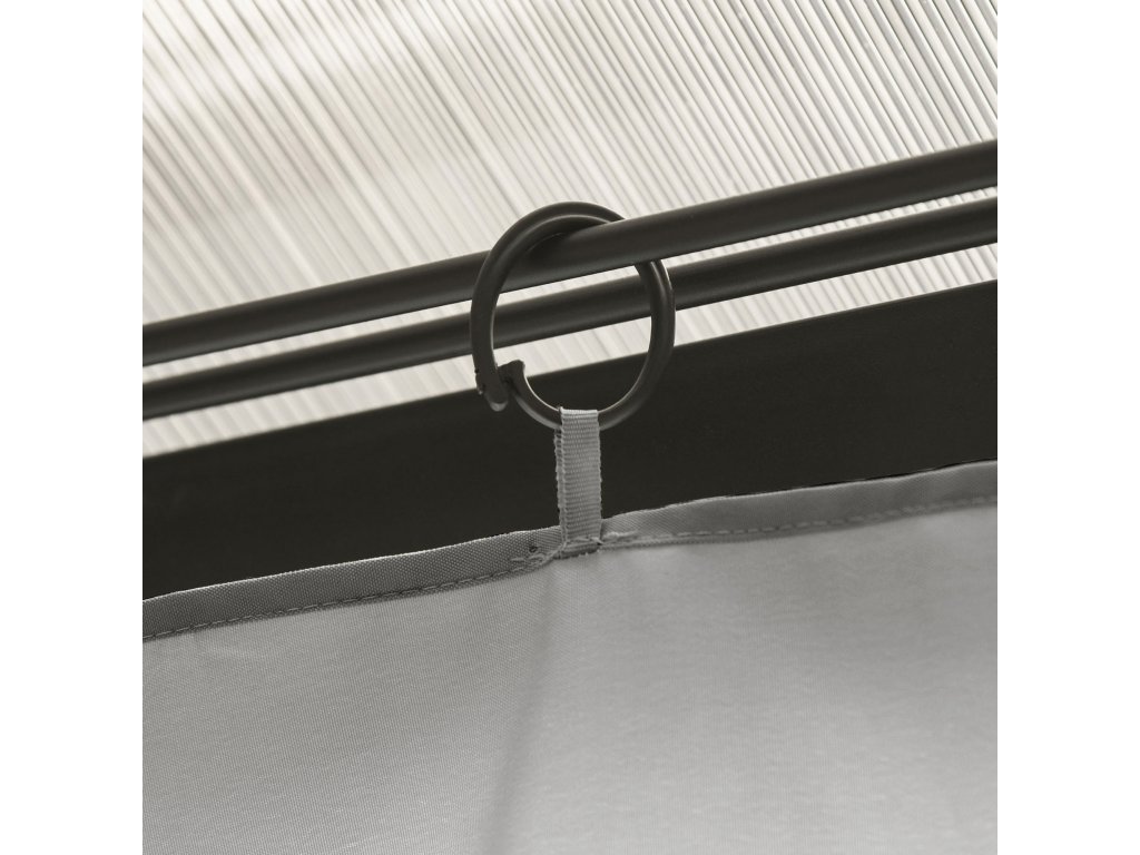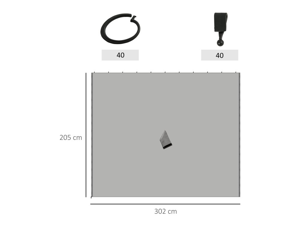 - Součástí dodávky je příslušenství: 4 x boční stěna (rozměry: 302L x 205H cm), 40 x háčky, 40 x C-kroužky.