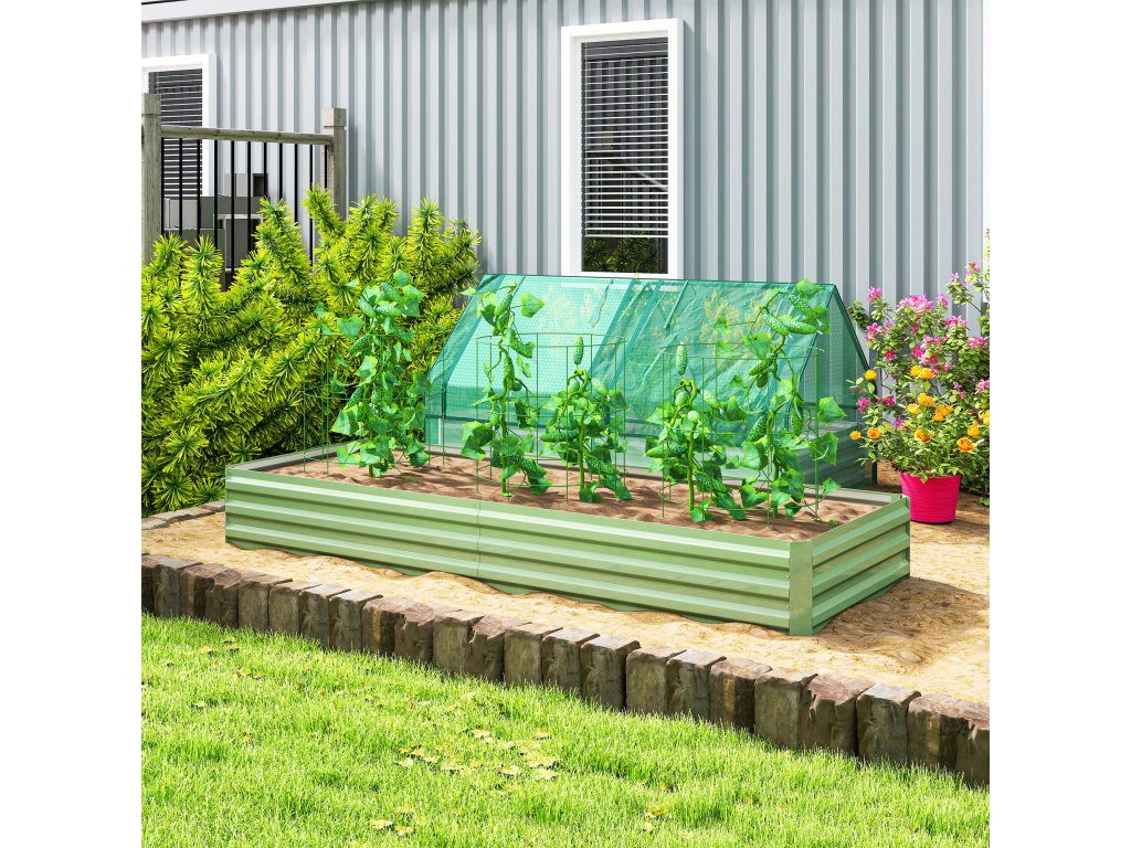 Outsunny ocelová vyvýšená postel, otevřená základna, snadná montáž, 241L x 90,5W x 30H cm, zelená barva
