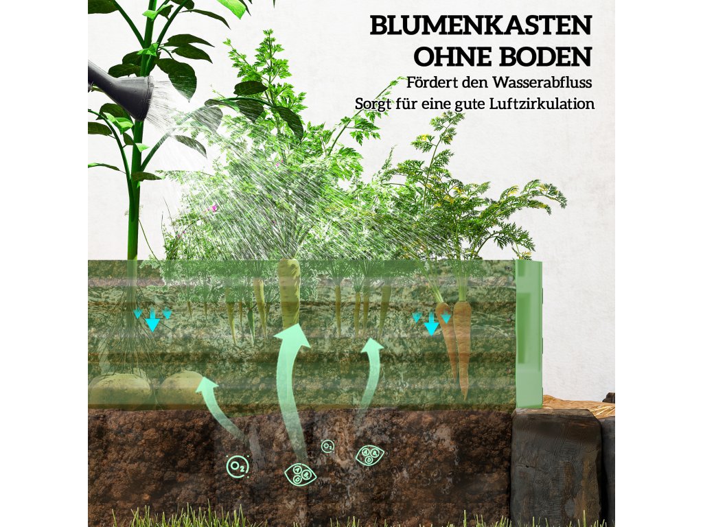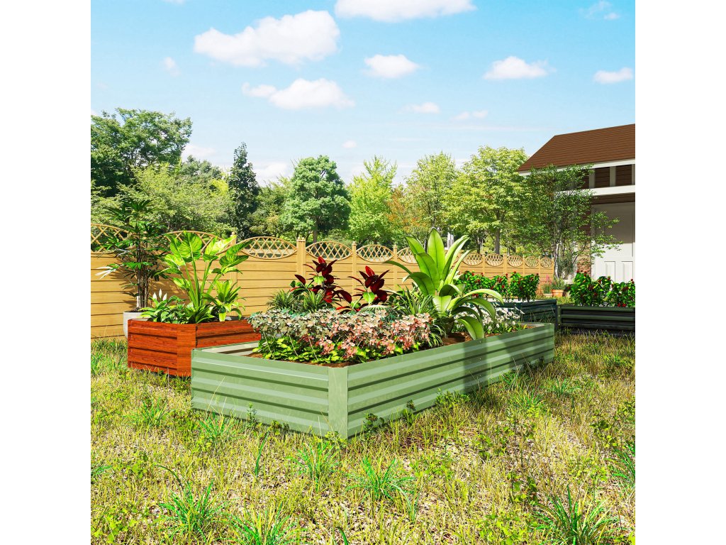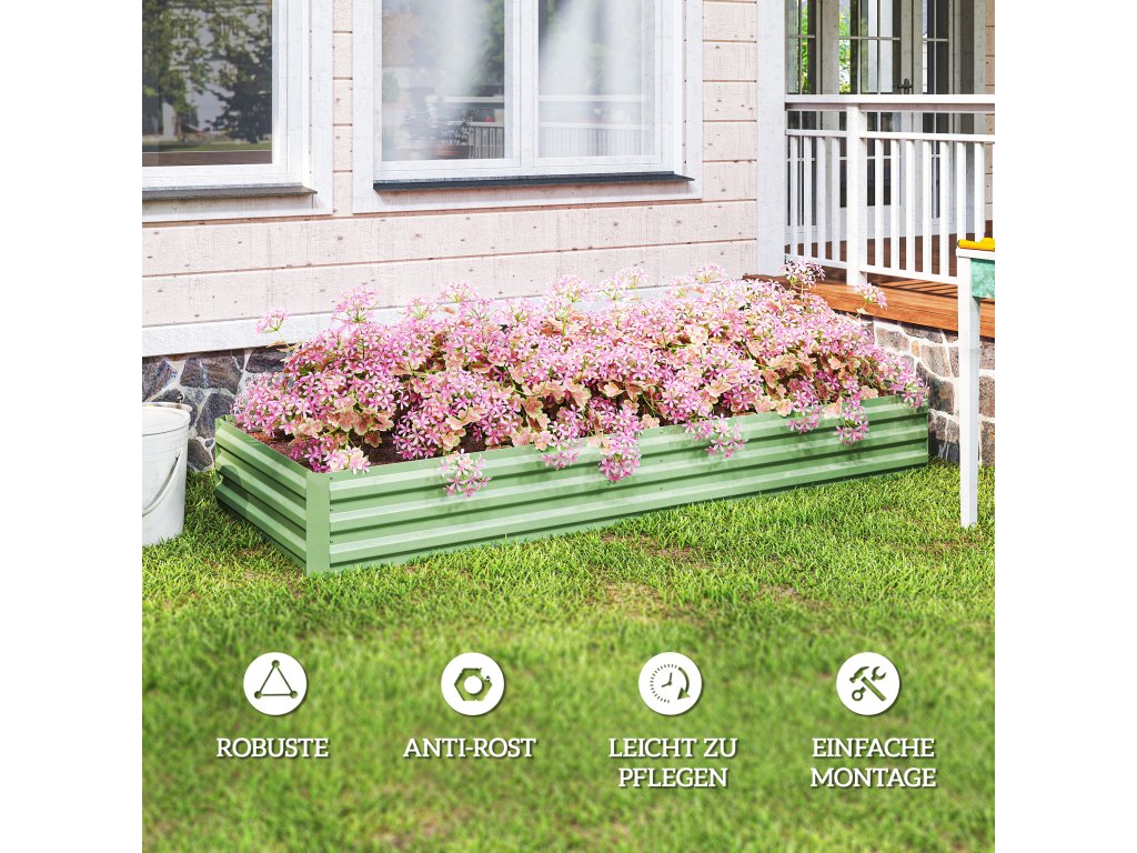 Vytvořte si zahradu snů bez námahy - náš ocelový vyvýšený záhon Outsunny je ideální volbou pro udržení rostlin v pořádku a chráněných. Už žádný otravný plevel a žádné obavy z dotěrných zvířat. Robustní ocelová konstrukce květinového truhlíku odolá všem povětrnostním podmínkám a zaručuje dlouhotrvající radost z vaší zahrady. Díky extra vysokým stěnám pro volný růst kořenů máte možnost pěstovat nepřeberné množství rostlin - od šťavnaté zeleniny až po voňavé květiny.