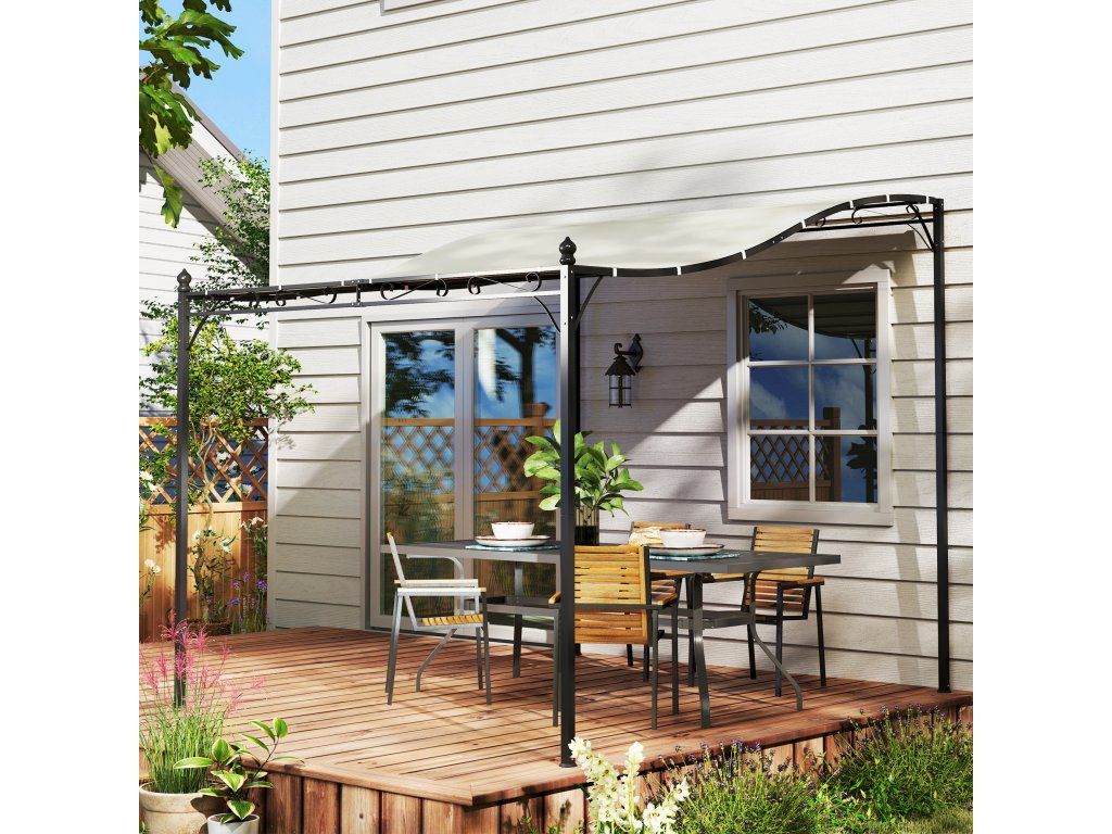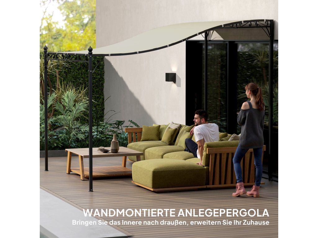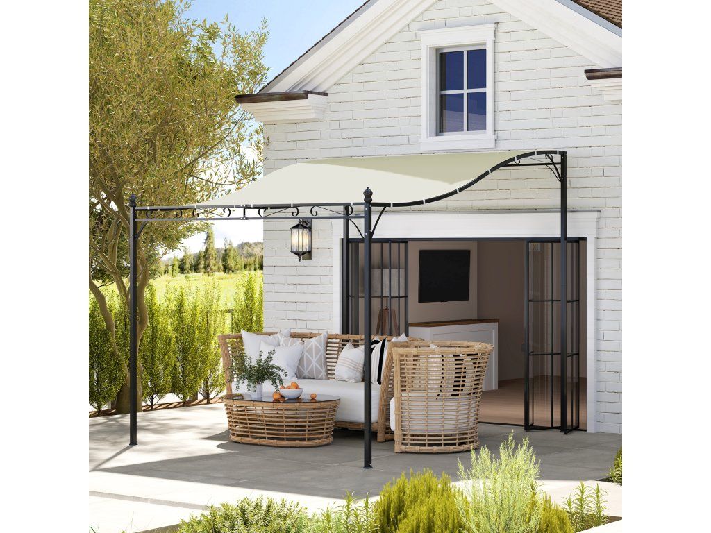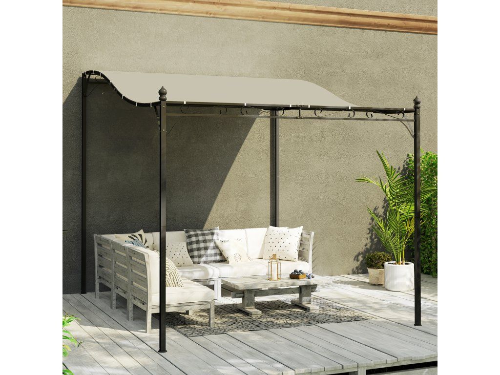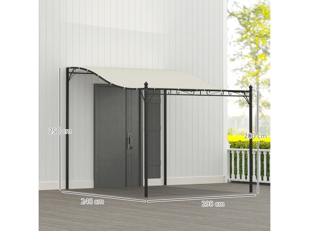 Outsunny pergola 2,5 x 3 m, nástěnný zahradní pavilon, voděodolný, kovový rám, odtokové otvory, stínící střecha, krémově bílá barva