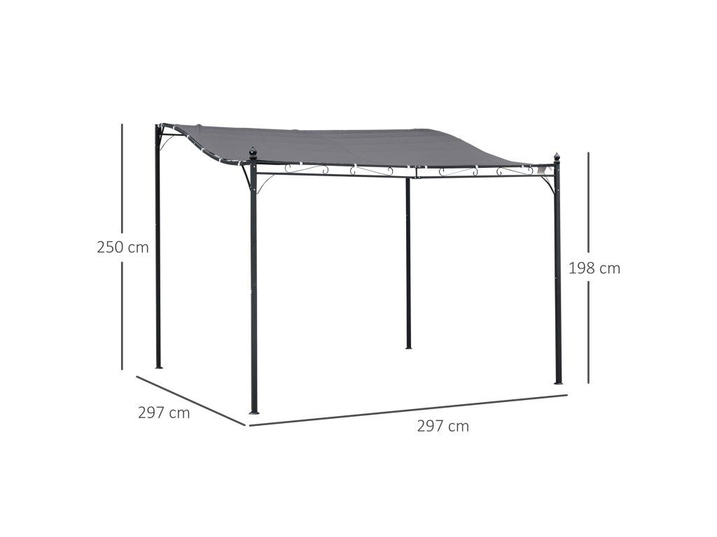 Outsunny pergola zahradní pavilon altán přístřešek stan kovový šedý 297x297cm