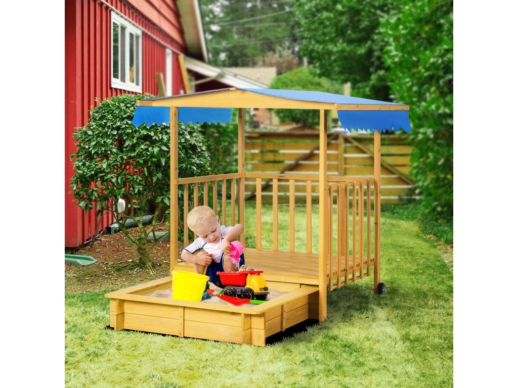 Outsunny pískoviště Pískoviště s domečkem na hraní Pískoviště se stříškou, 133 x 129 x 137, 5 cm, příroda + modrá barva