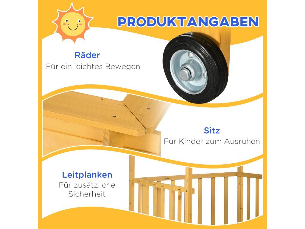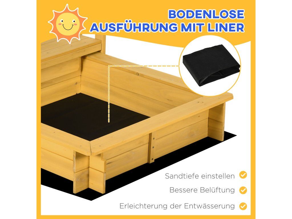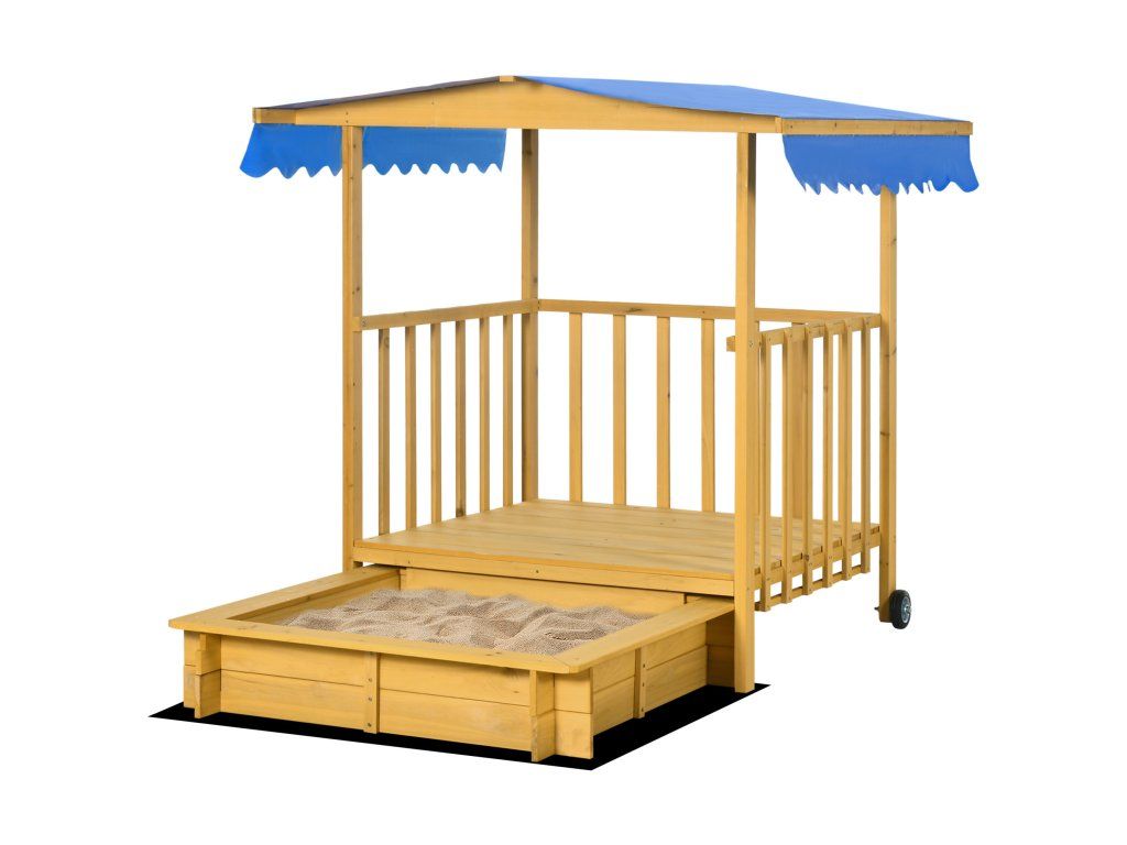 S pískovištěm Outsunny s domečkem na hraní mohou děti trávit hodiny hraním venku, kopáním a stavěním hradů z písku. Sluneční stříška pískoviště je ideální pro venkovní použití a chrání před horkým počasím a mírným deštěm, zatímco konstrukce bez dna a obložení zabraňují tomu, aby písek padal všude kolem. Pískoviště je dostatečně velké pro tři děti, které si na něm budou rády hrát s kamarády nebo sourozenci.