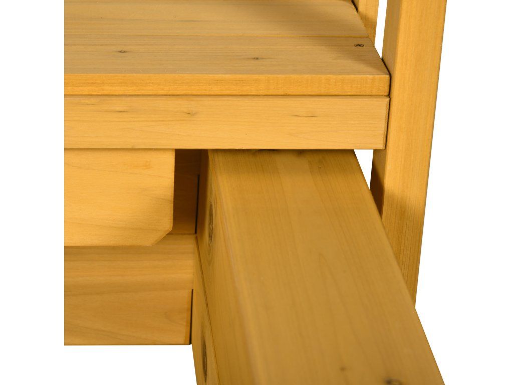- Robustní konstrukce: Pískoviště je vyrobeno ze smrkového dřeva a je vhodné pro každodenní venkovní použití. Pískoviště se stříškou má plochu na sezení s lavičkami, na kterých mohou děti odpočívat, a hrací domeček má zábradlí, které zajišťuje bezpečnost dětí