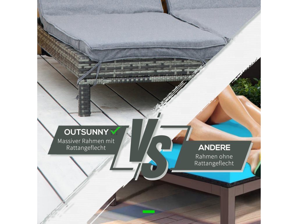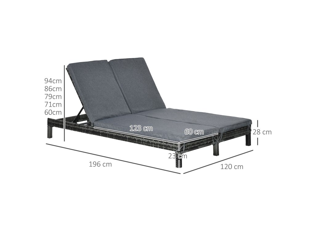 Pohodlně se usaďte na toto lehátko od společnosti Outsunny a užívejte si čerstvého vzduchu na zahradě v příjemné společnosti. Robustní kovový rám je obložen plastovým ratanem odolným proti povětrnostním vlivům, což znamená, že toto lehátko nejen vypadá mimořádně moderně a vkusně, ale je také ideální pro dlouhodobé venkovní použití. Velkorysé polstrování a 5stupňově nastavitelné opěradlo vám umožní rychle najít ideální polohu ležení.