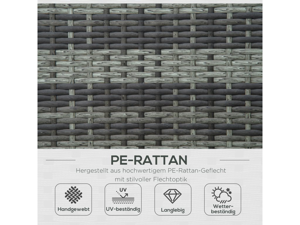 - ✔ Materiál: pozinkovaný rám, PE ratan, pěna, polyester