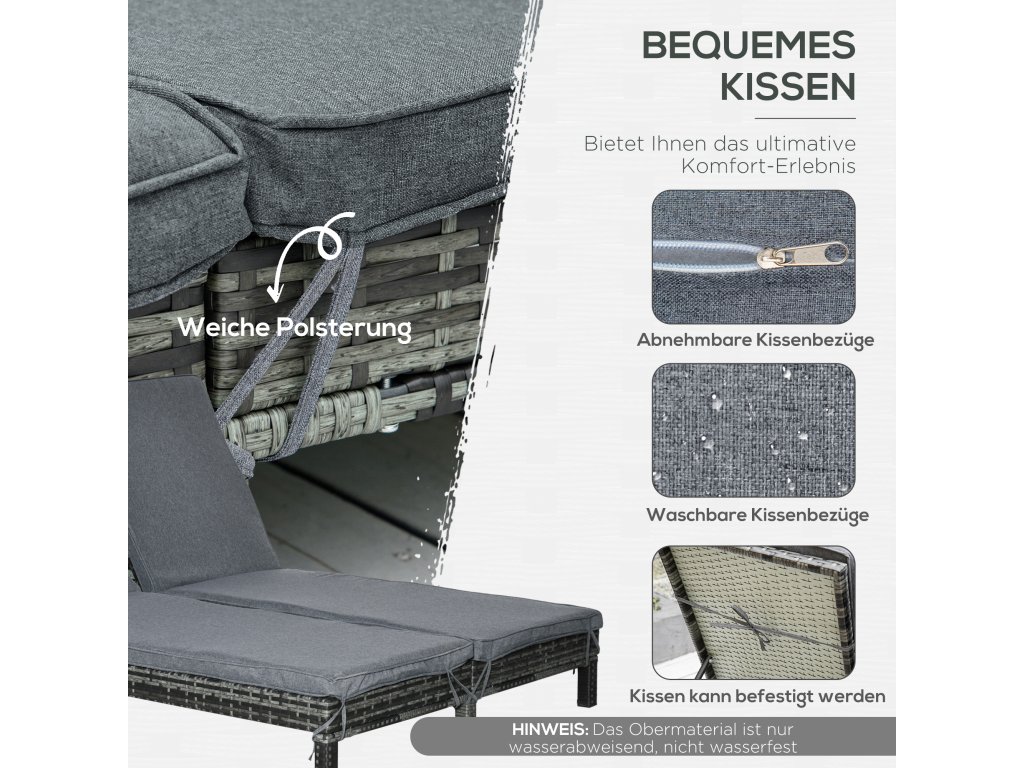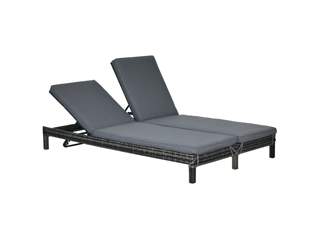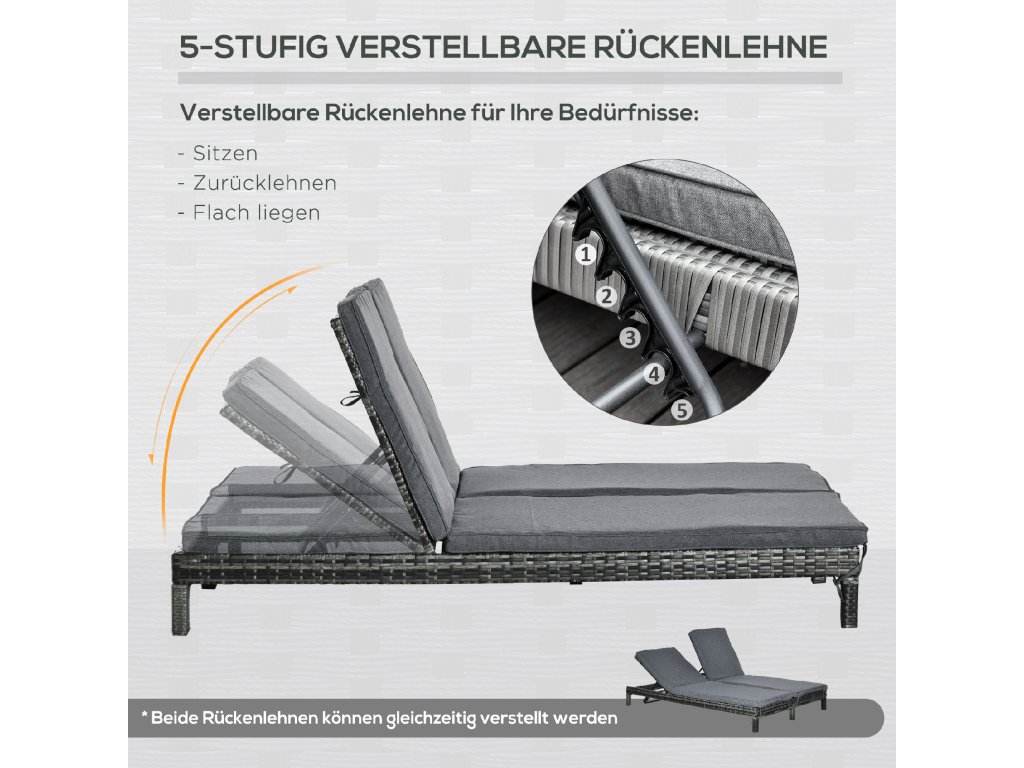 Outsunny Polyratanové dvojité lehátko Zahradní lehátko pro 2 osoby Relaxační lehátko Luxusní lehátko 5-stupňové opěradlo Kovový PE ratan Šedá 196 x 120 x 28 cm