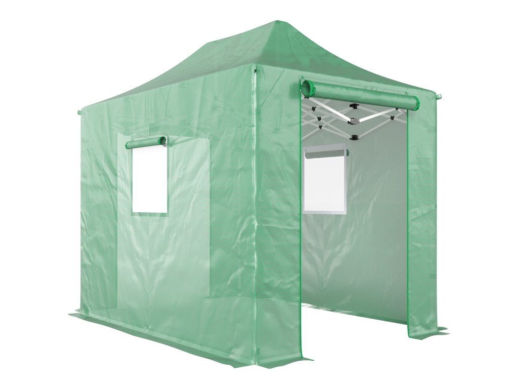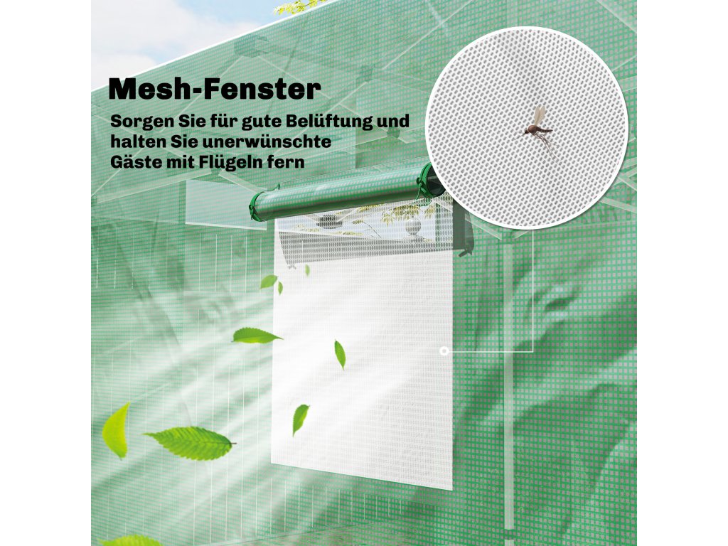 - Rozevírací dveře a okna: Dveře fóliového skleníku se zipem umožňují snadný přístup, zatímco rolovací okna zajišťují optimální větrání a poskytují vašim rostlinám neustále čerstvý vzduch.