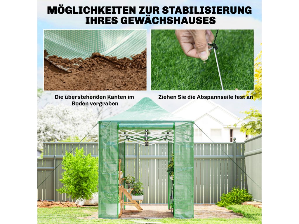 - Výsuvná konstrukce: Díky praktické výsuvné konstrukci lze skleník postavit a složit během okamžiku. Když se skleník nepoužívá, lze jej složit do kompaktních rozměrů, aby se ušetřilo místo, a pohodlně uložit do garáže nebo kůlny.