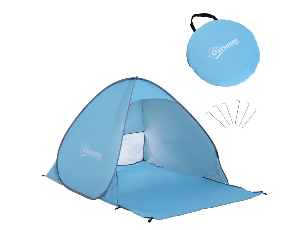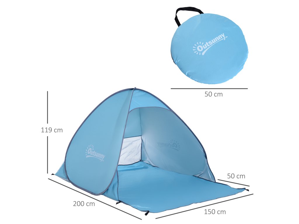 Outsunny pop-up stan, plážový stan, kempinkový stan, polyester, 200 x 150 x 119 cm, modrý