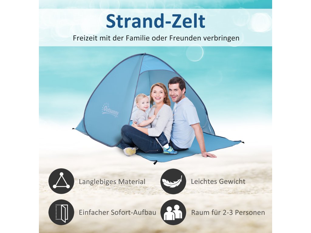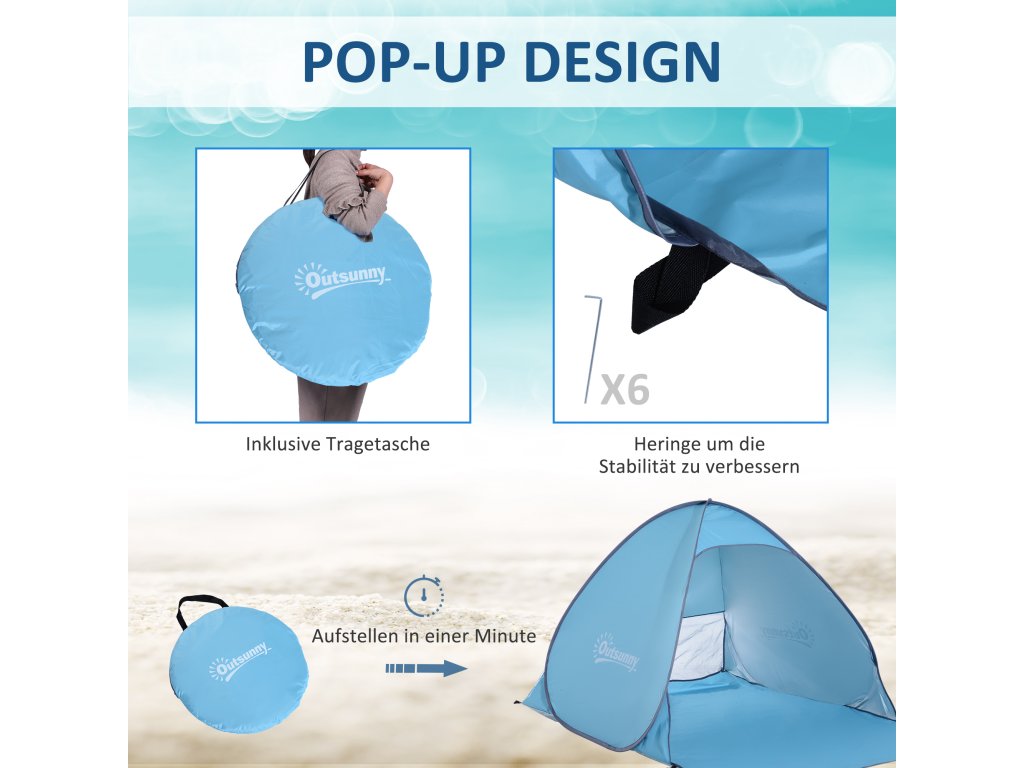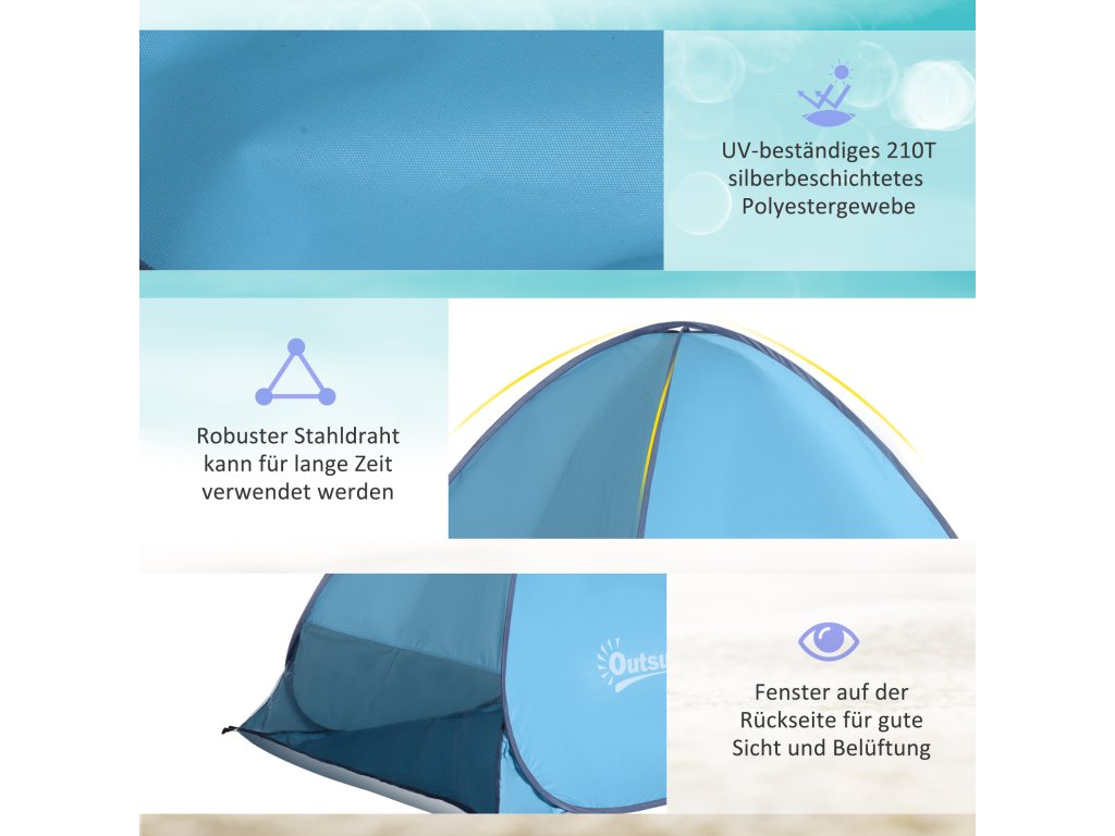 - Snadné sestavení - plážový stan lze sestavit automaticky během několika sekund po vyjmutí z přenosné tašky, což ušetří spoustu času a námahy.