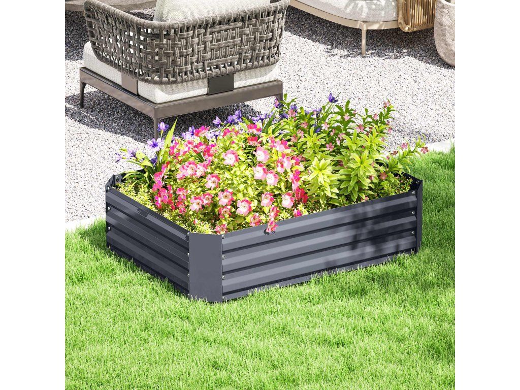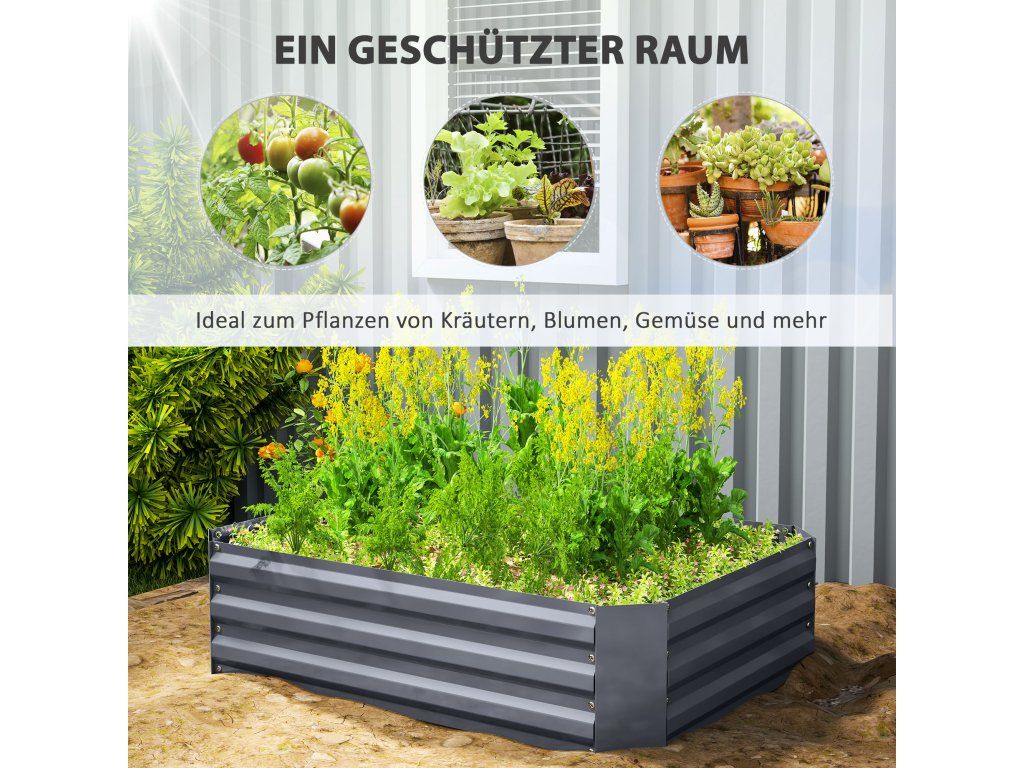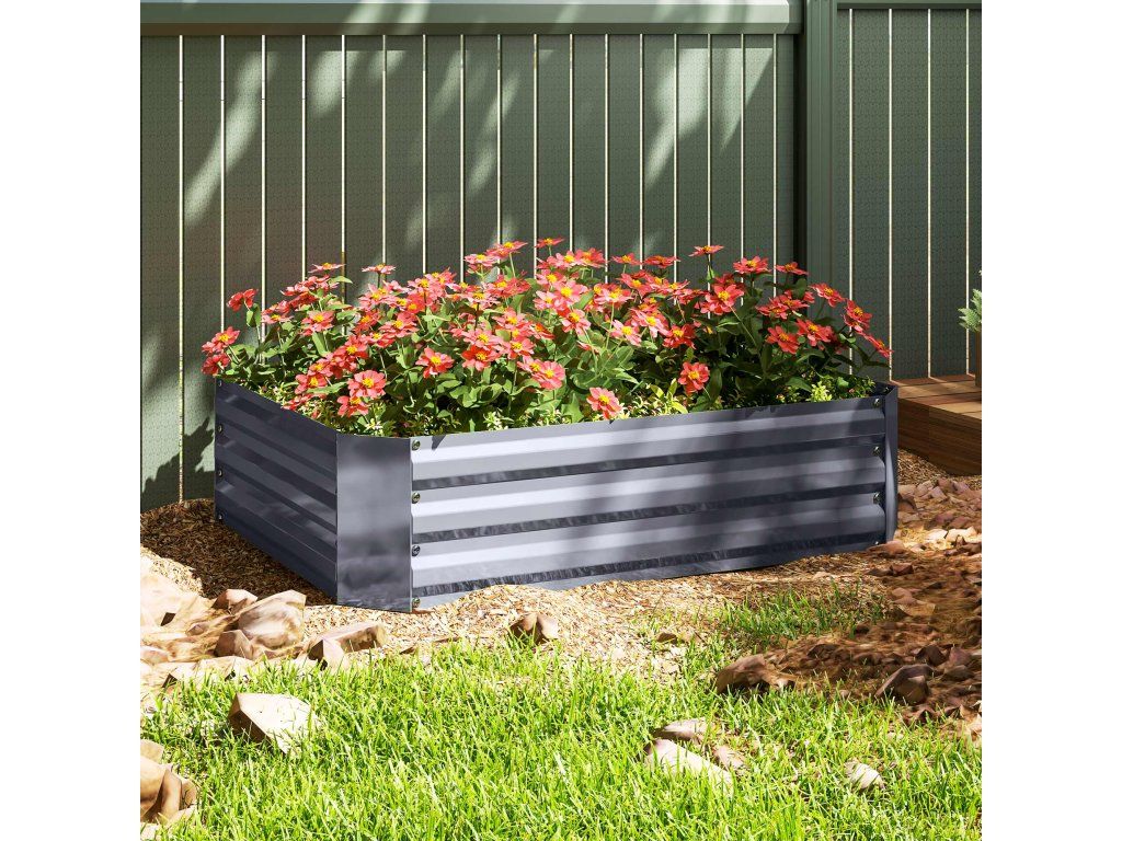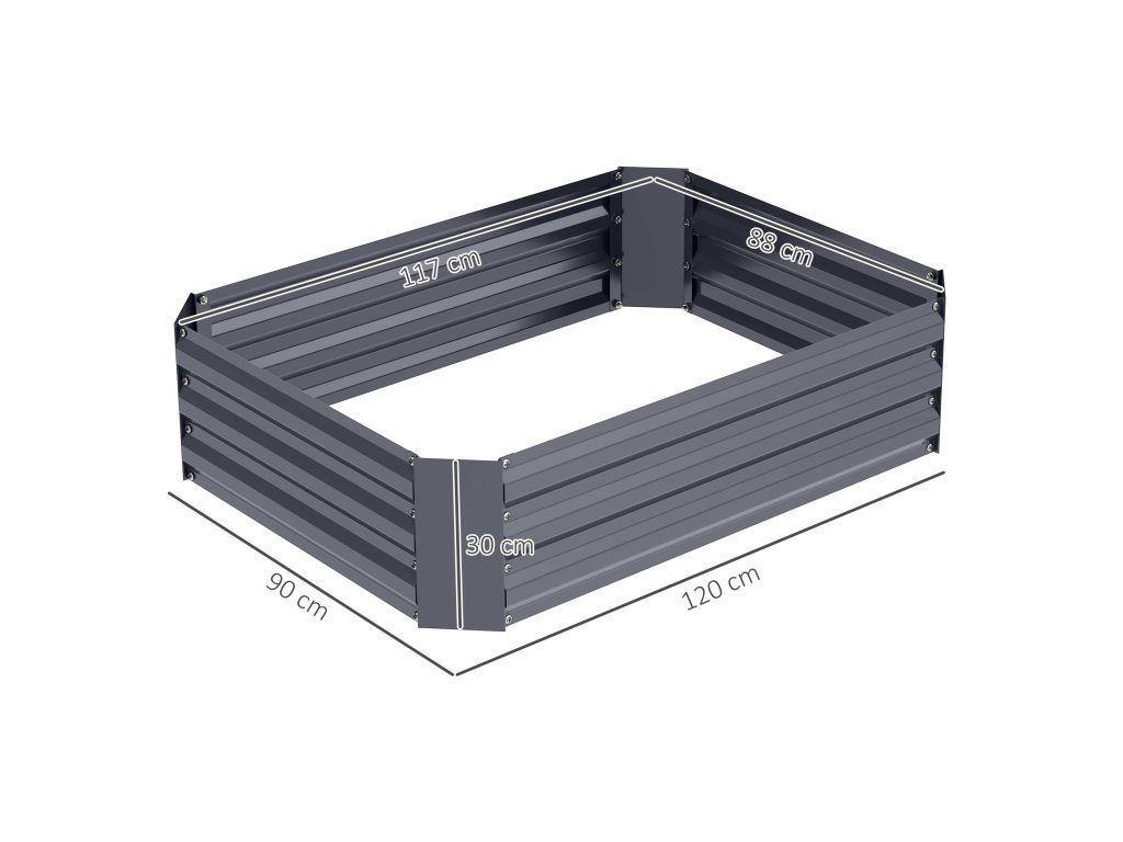 Outsunny pozinkovaný ocelový vyvýšený záhon, zahradní záhon, truhlík na květiny, 120 x 90 x 30 cm, tmavě šedý