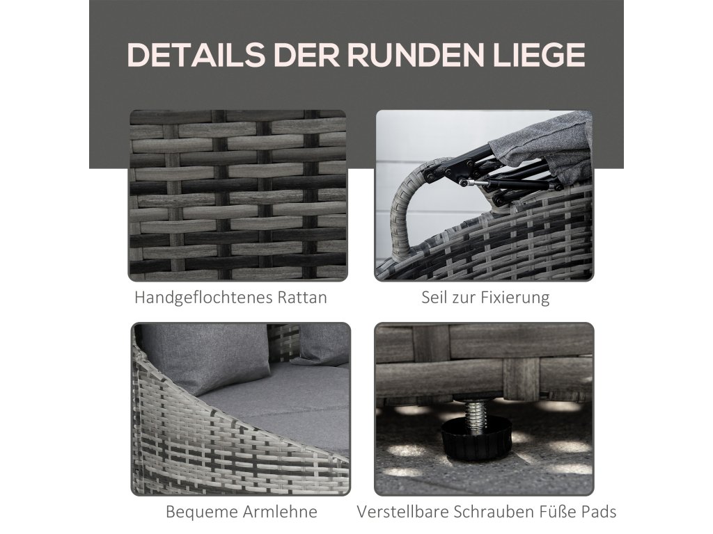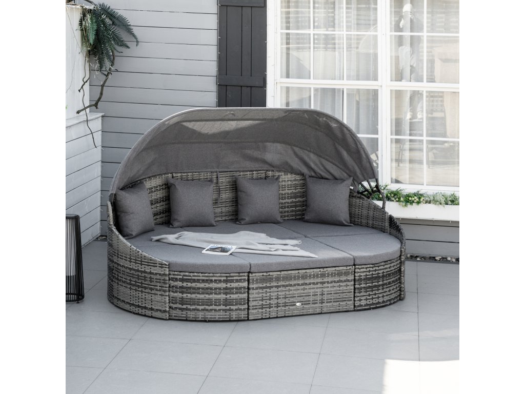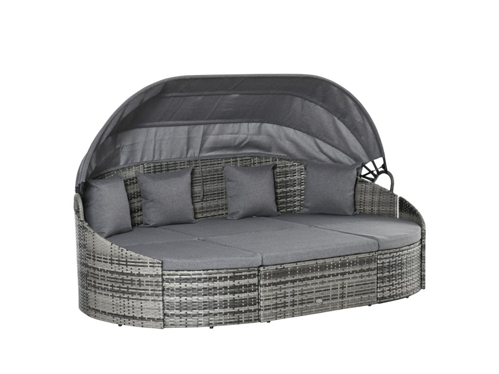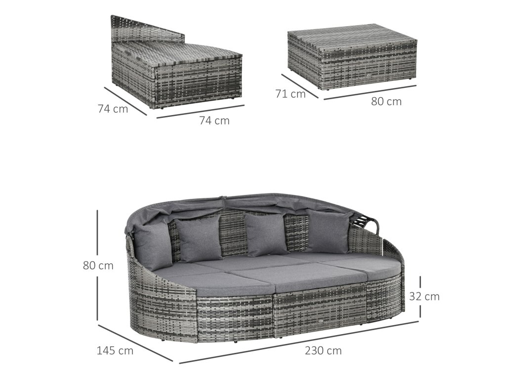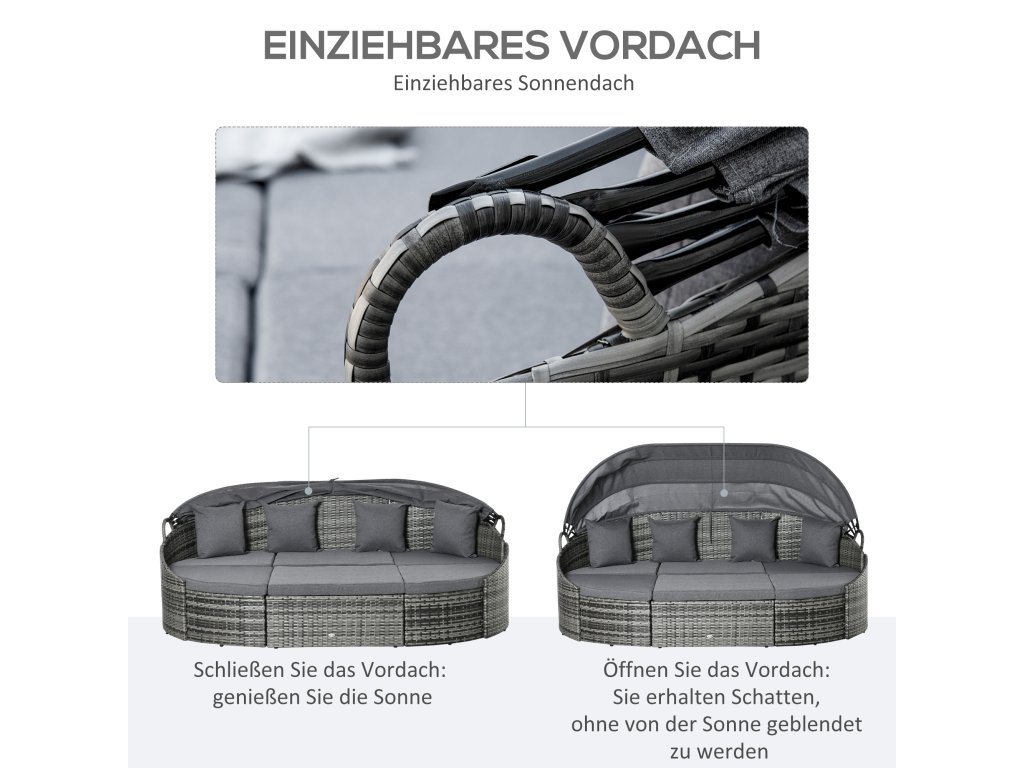 Outsunny ratanový sluneční ostrov 4dílné lehátko ostrov se sluneční stříškou sedací skupina 4 polštáře kovově šedá 230 x 145 x 80 cm