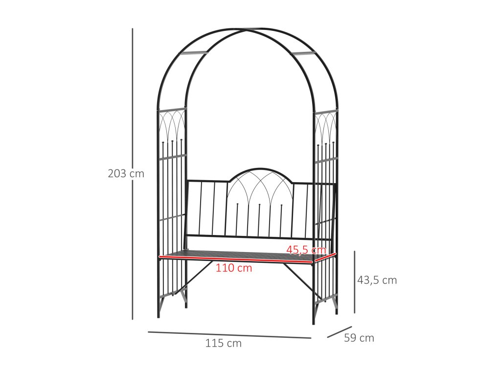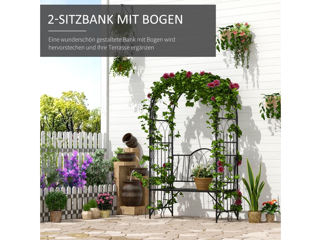 Outsunny růžový oblouk s lavičkou růže lavička altán lavička filozofa lavička mřížka lezecká pomůcka zahradní lavička kovová černá 115 x 59 x 203 cm