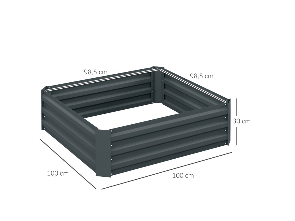 - Údaje o výrobku pro vyvýšený bylinkový záhon: Celkové rozměry: 100L x 100W x 30H cm, optimalizovaná plocha pro výsadbu pro maximální využití: 98,5L x 98,5W x 30H cm