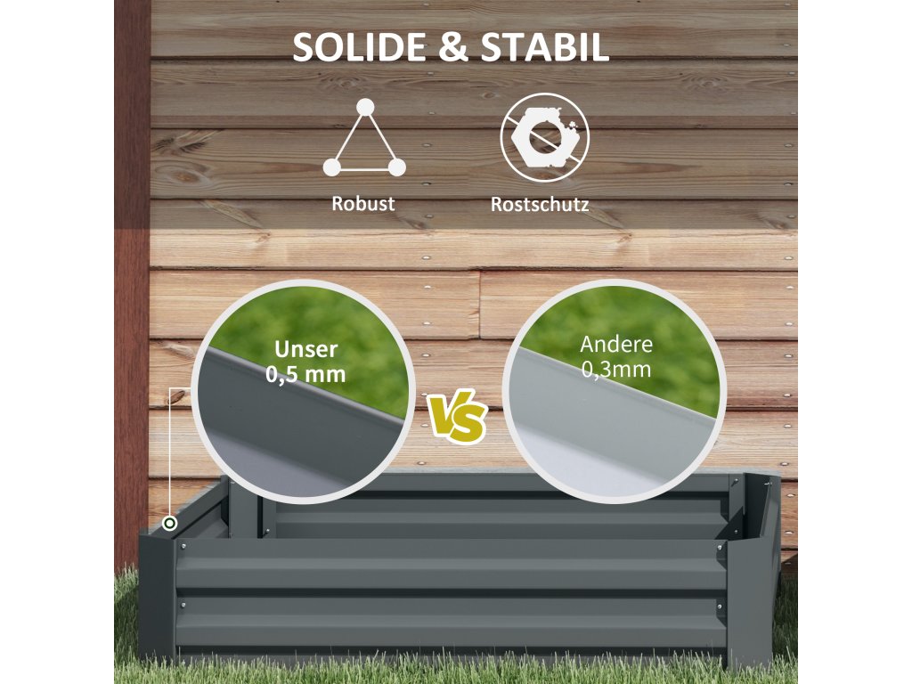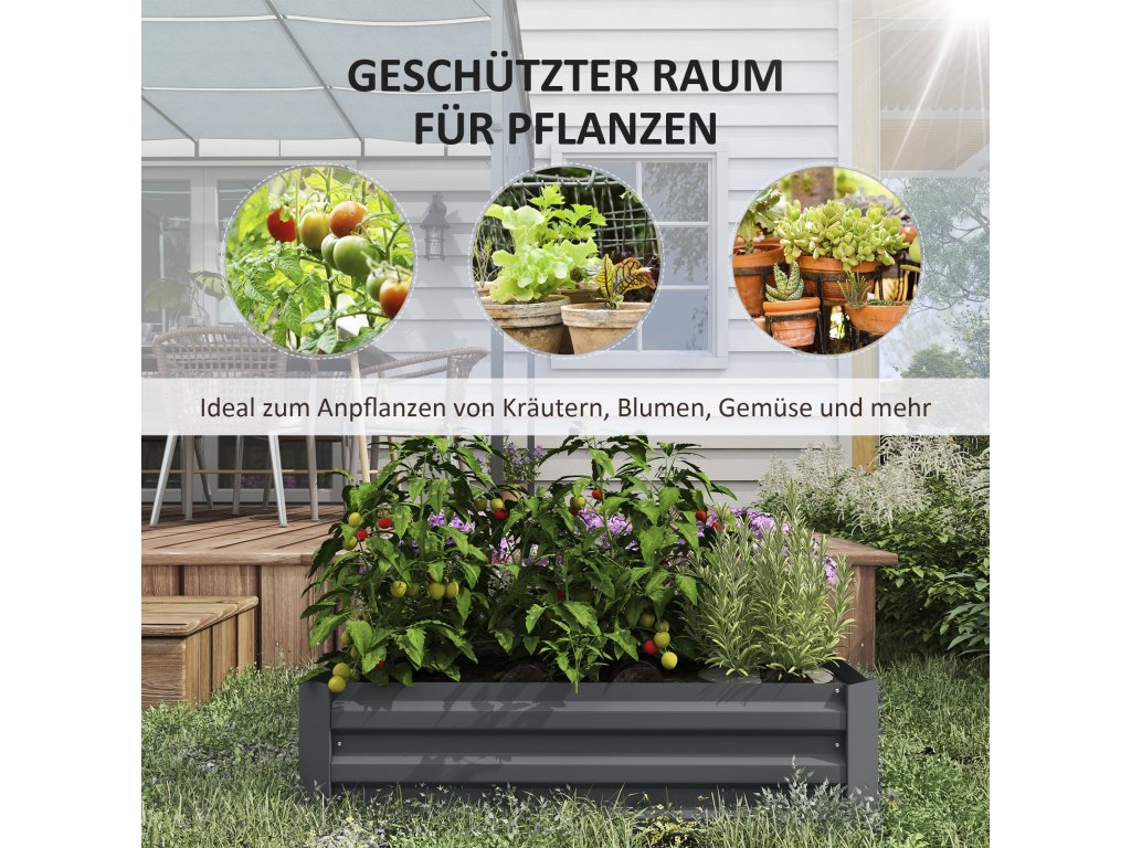 - Pro venkovní použití: Tento bylinkový záhon je vyroben z robustní lakované oceli a nabízí dlouhodobou odolnost vůči deformacím a povětrnostním vlivům - je to trvanlivá alternativa dřeva