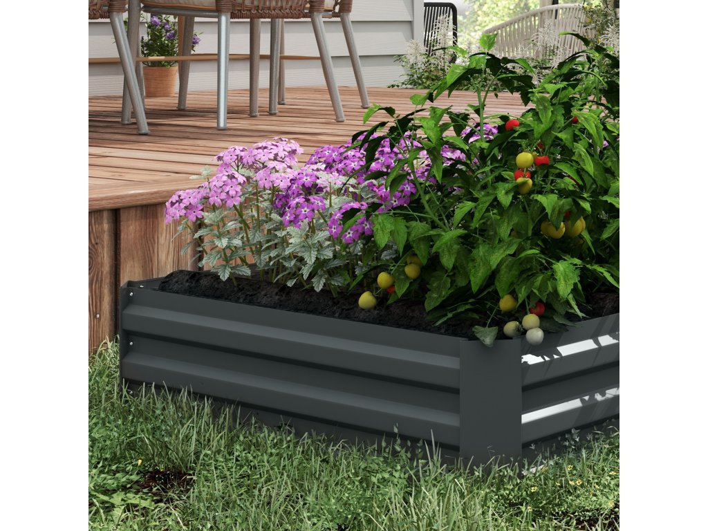 Outsunny sada 2 květináčů, květinový truhlík, květináč na zahradu, terasu, pozinkovaná ocel, 100 x 100 x 30 cm, tmavě šedá barva