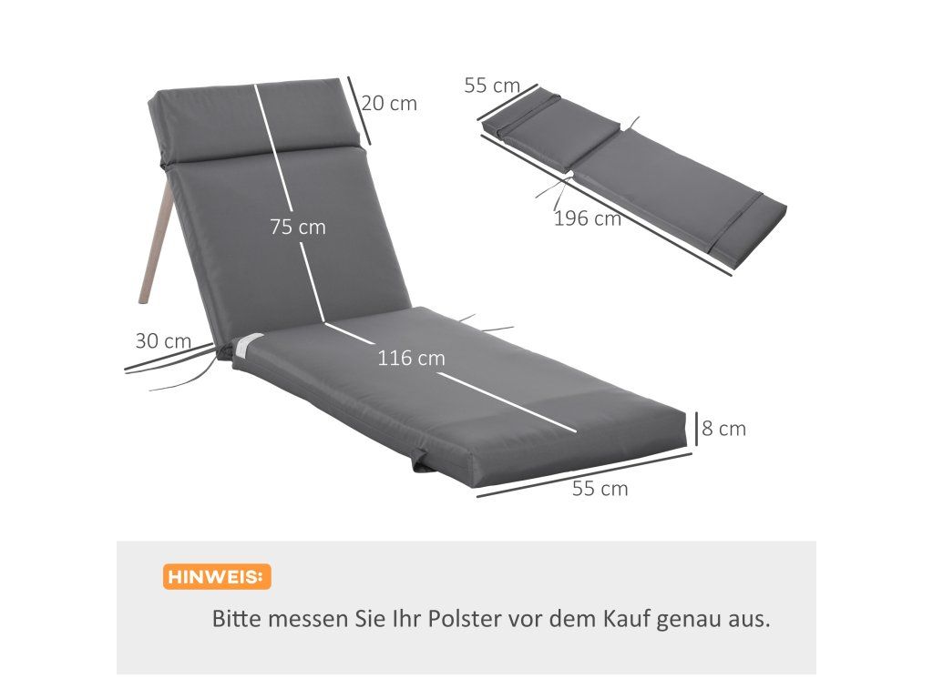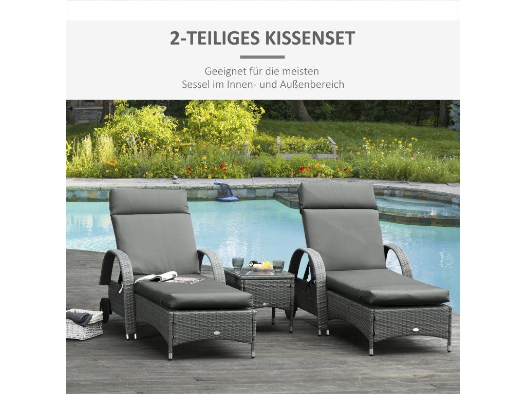 Outsunny sada 2 polštářů na lehátko, polštář na lehátko pro zahradní lehátko extra silný 8cm tmavě šedý polštář POUZE