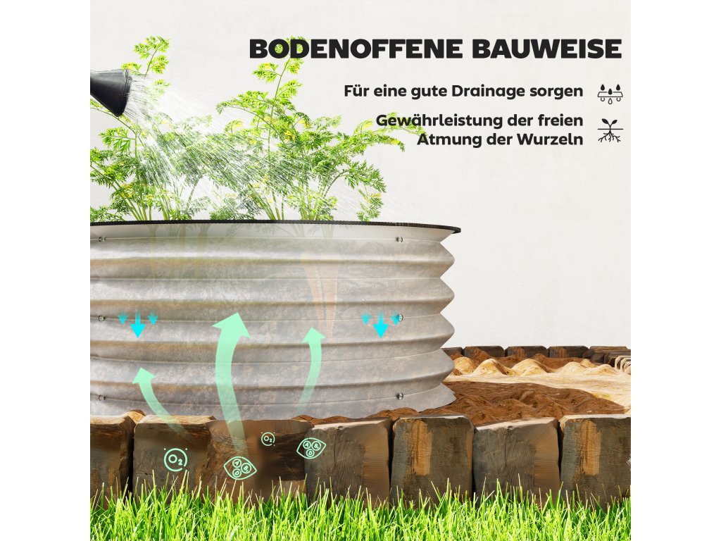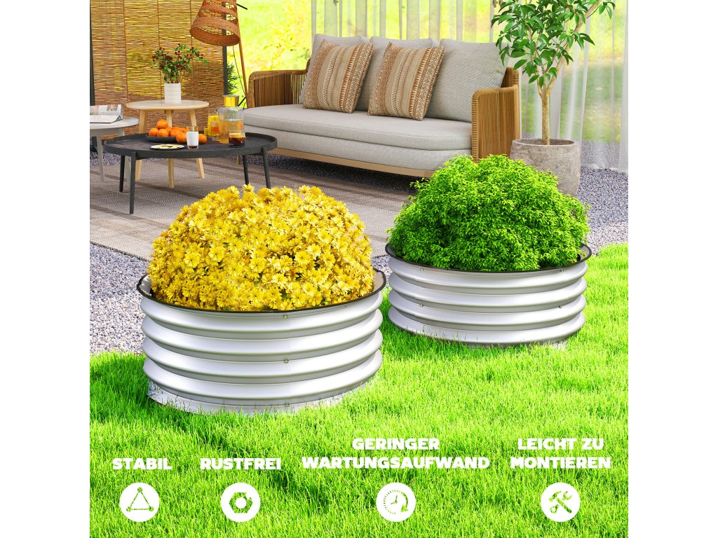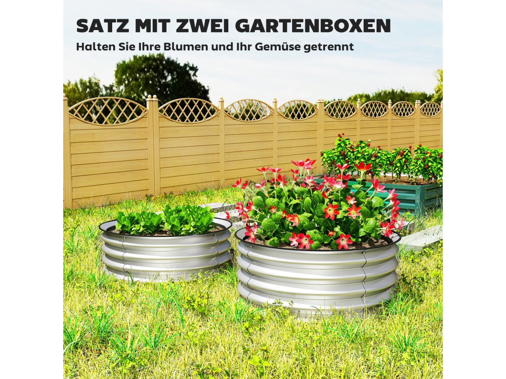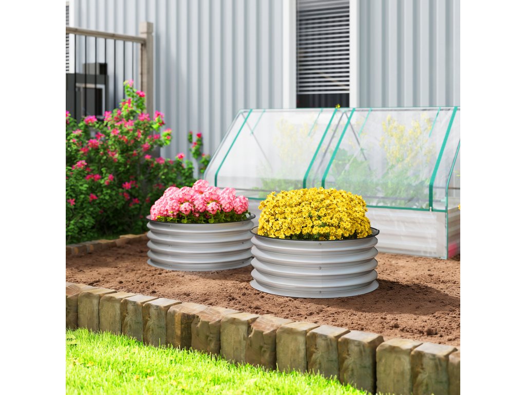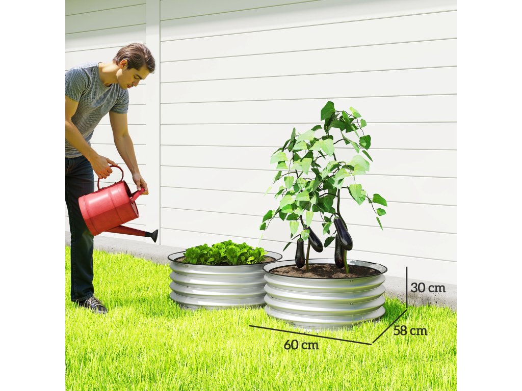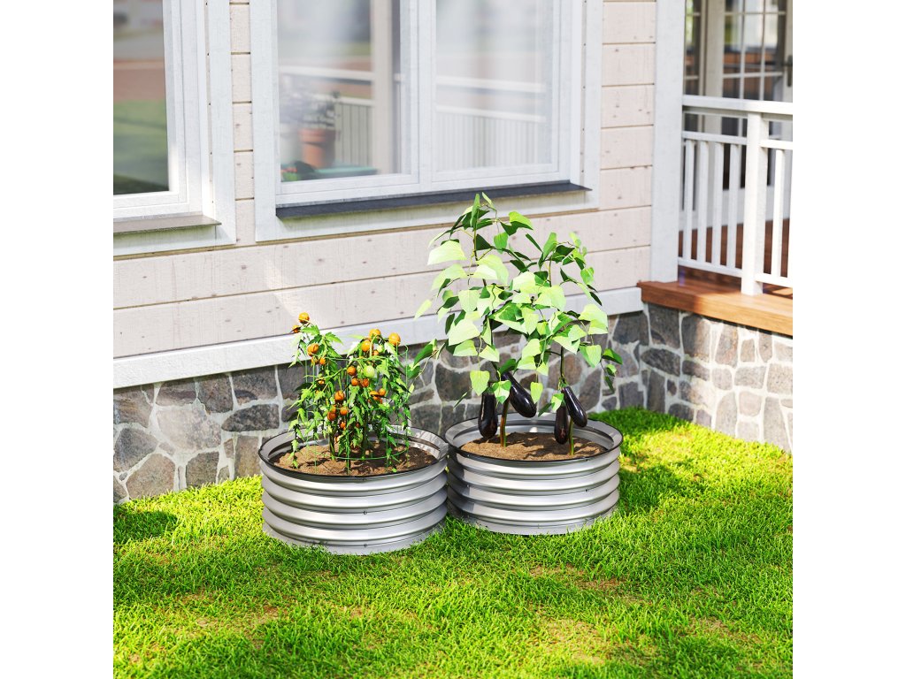 Outsunny sada 2 vyvýšených záhonů, modulární vyvýšený záhon, 2 kusy, bez podstavce, Ø60 x 30 cm. Stříbrná