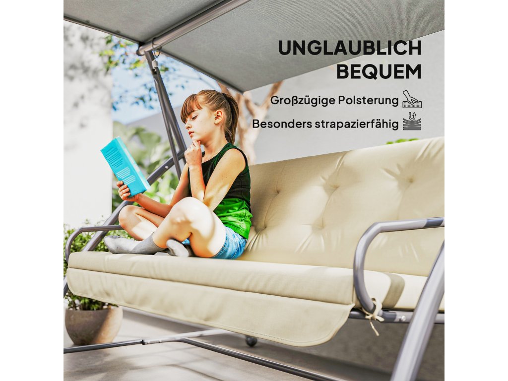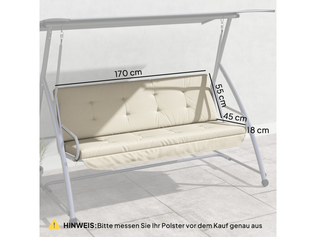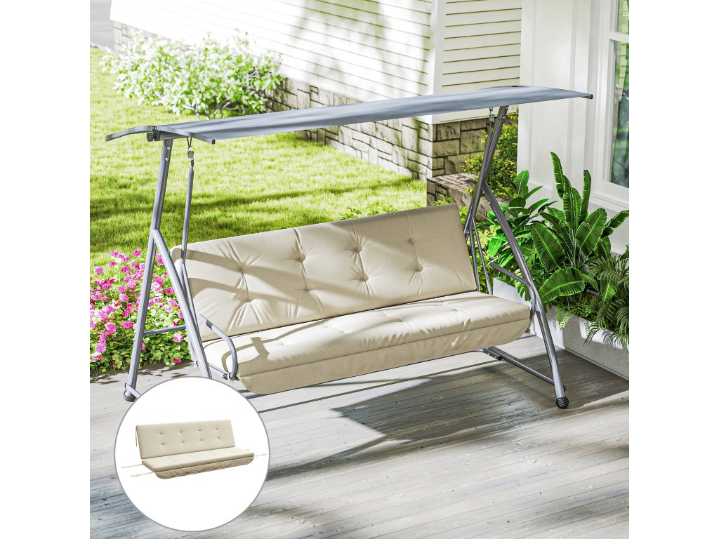 Outsunny sada polštářů pro hollywoodskou houpačku 170 cm polštář na křeslo polštář na houpačku polštář na sedadlo zahradní houpačka polštář na záda polštář na boční stranu béžový