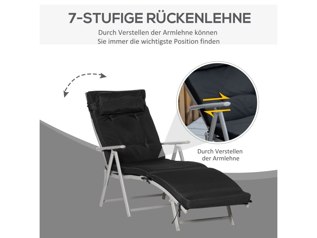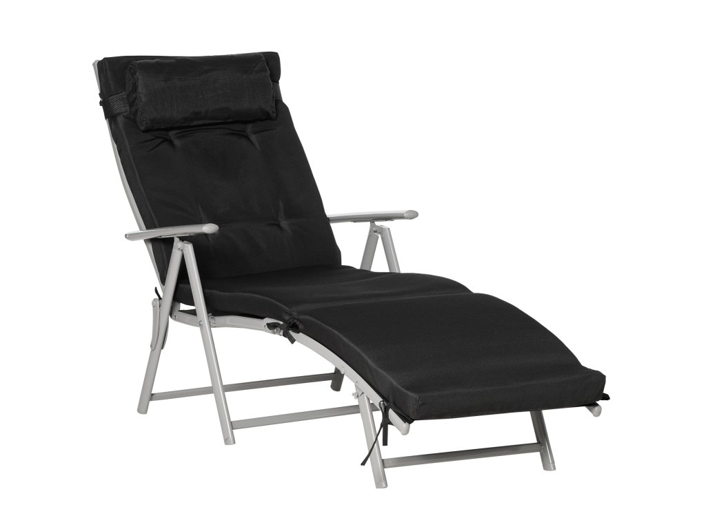 Outsunny skládací plážové lehátko s polštářem pod hlavu Polštářek na sezení Lehátko se 7polohovým nastavitelným opěradlem Zahradní lehátko Relaxační lehátko, nosnost až 165 kg, pro zahradní dovolenou venku, černé