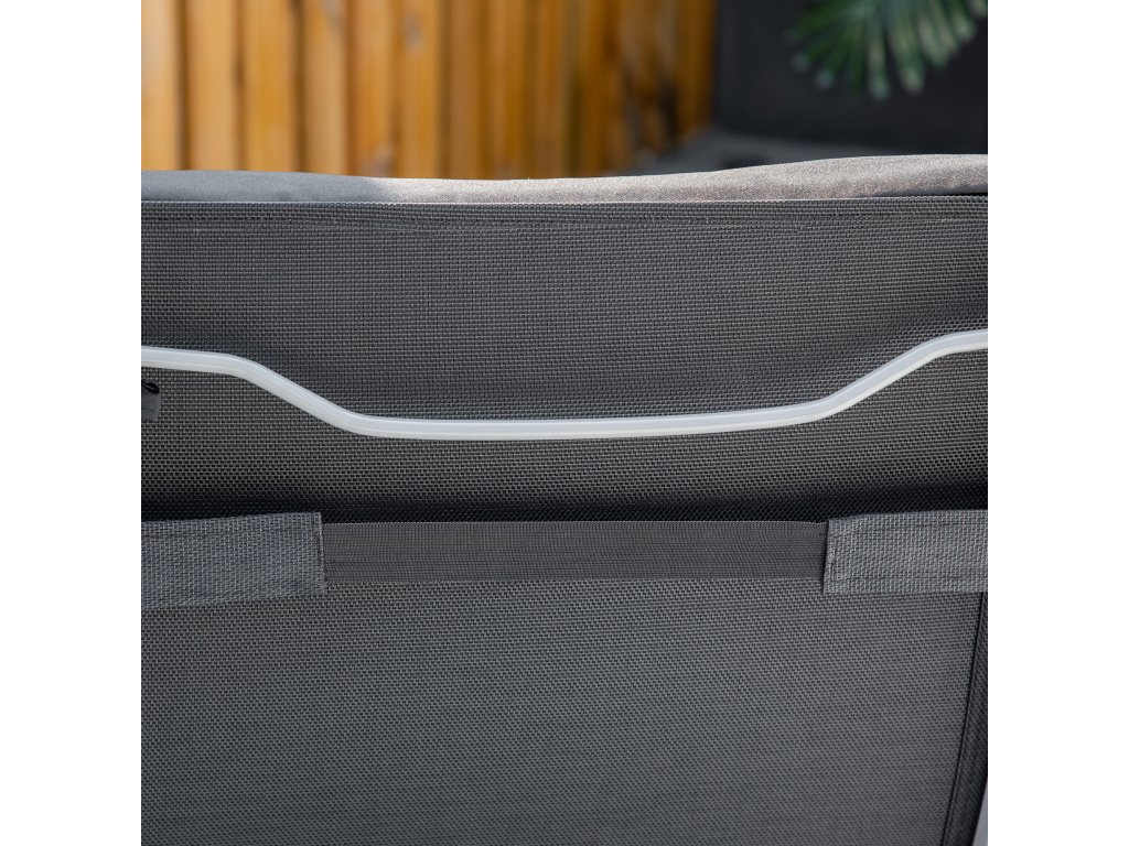 - Pohodlí při sezení a ležení: Potah sedáku z prodyšné tkaniny Texteline je pohodlný a snadno se čistí. Na tomto pohodlném lehátku můžete zůstat v pohodě i v horkých letních dnech.