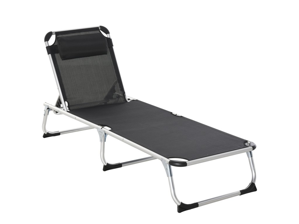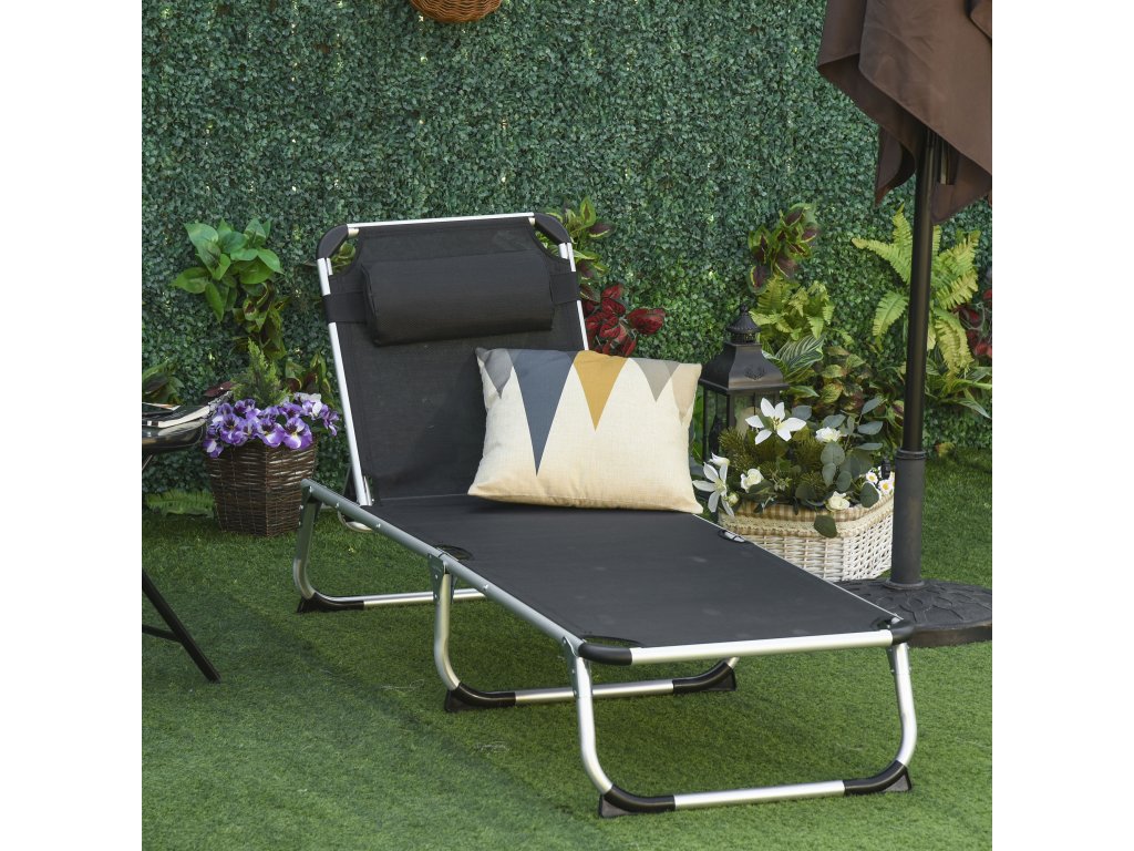Outsunny skládací zahradní lehátko s polštářem Lehátko se 4stupňovým nastavitelným opěradlem Kempingové lehátko s nosností až 120 kg pro venkovní park, zahradu, černá barva