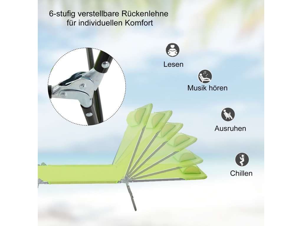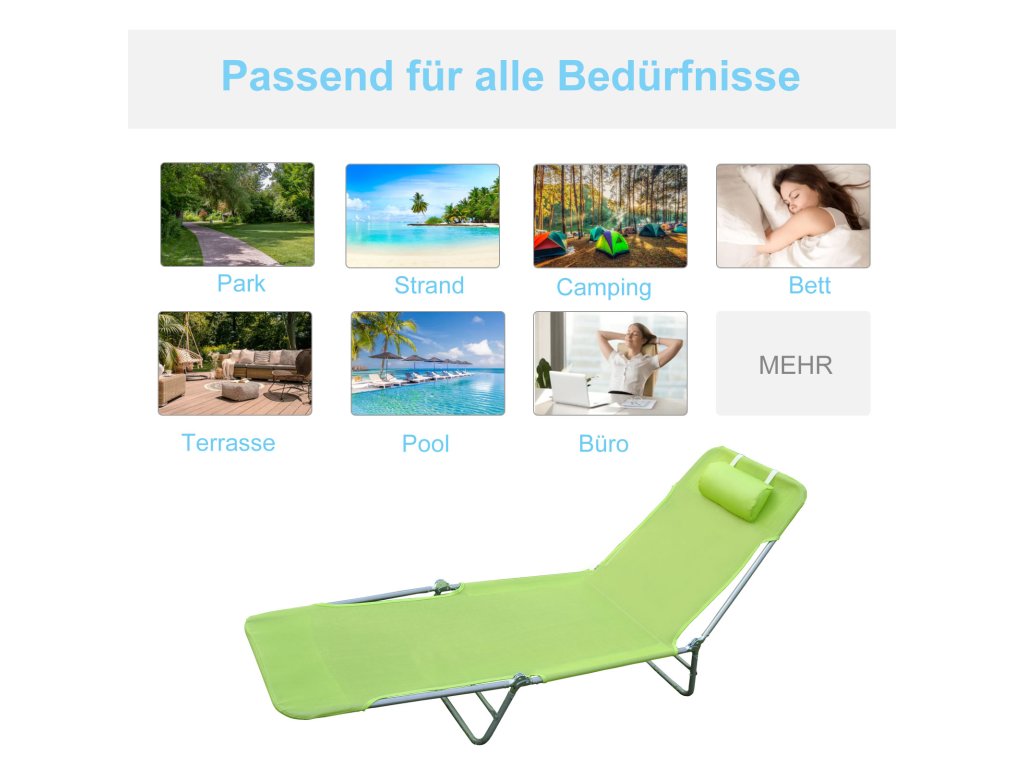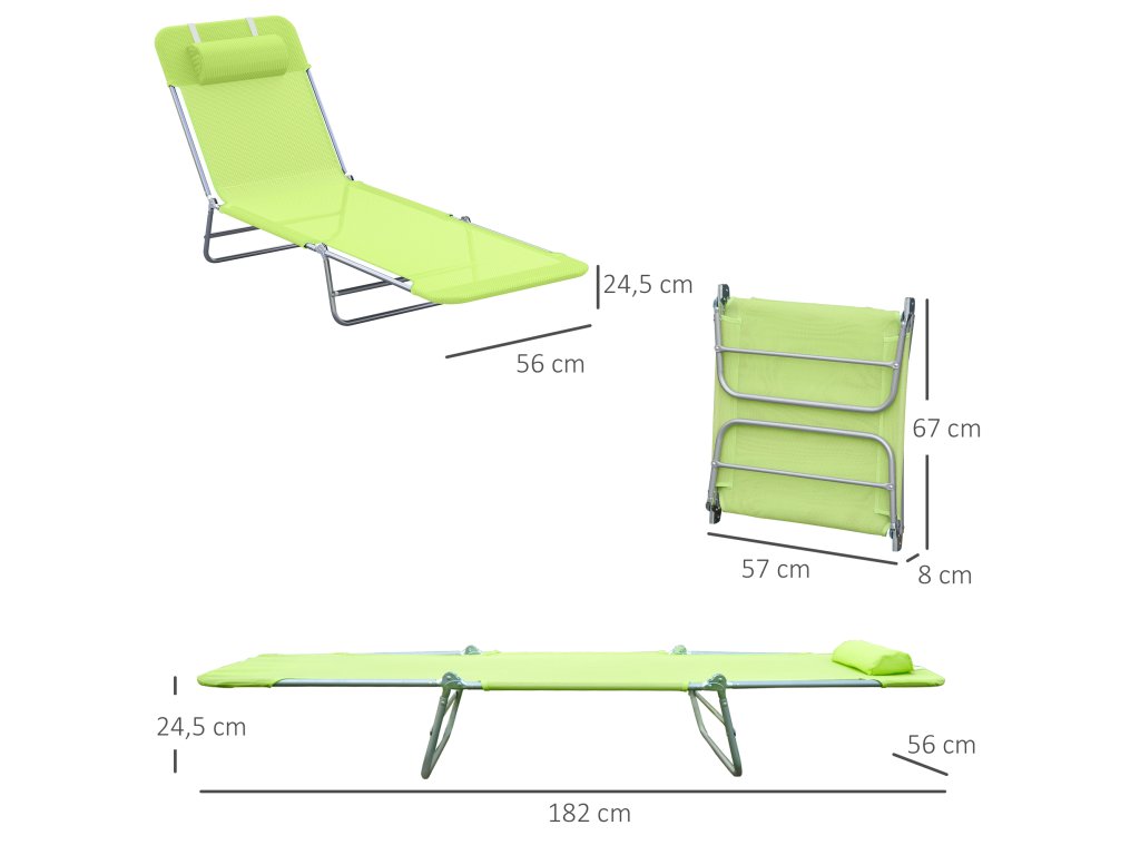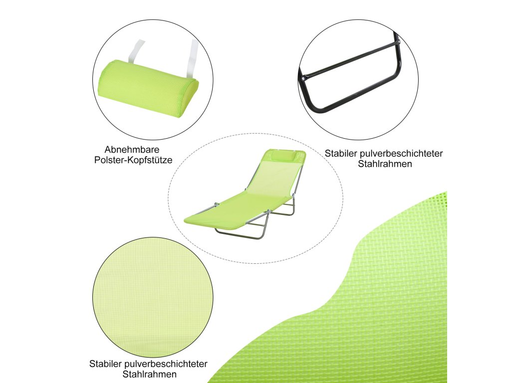 Outsunny skládací zahradní lehátko s polštářem nastavitelné s 5násobným kempingovým lehátkem s nosností až 120 kg vhodné na zahradu, balkon a k bazénu, 4 barvy (zelená)