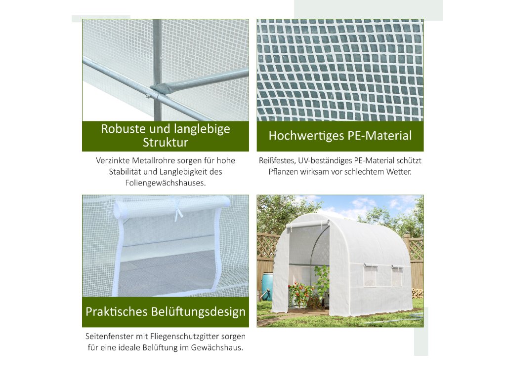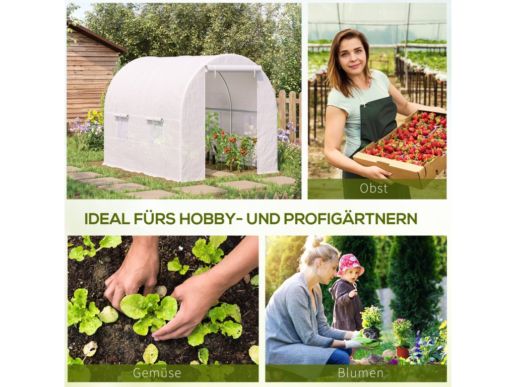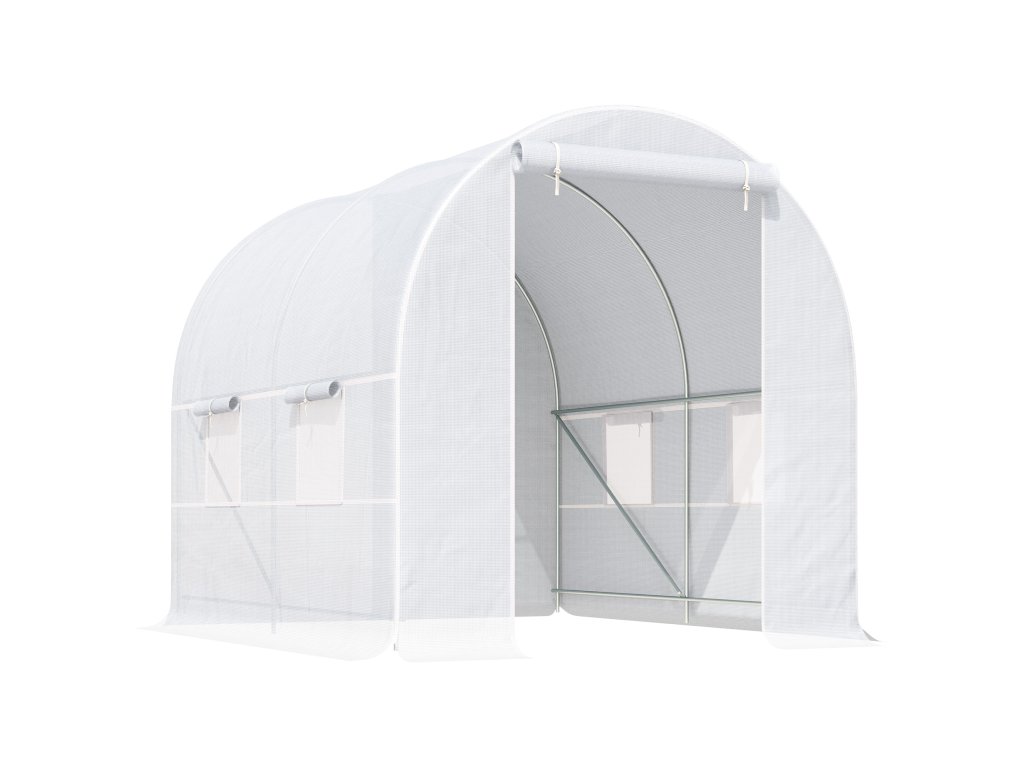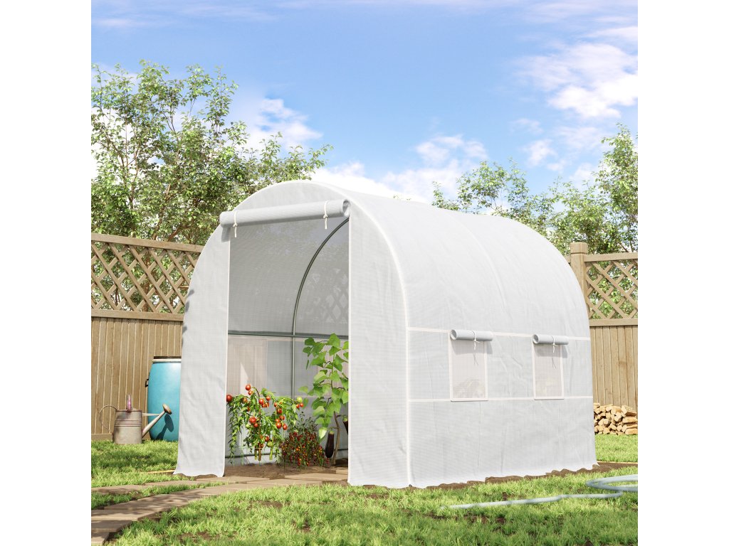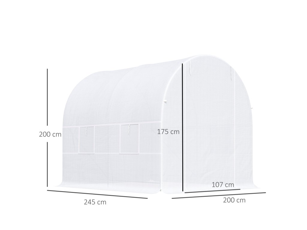 Outsunny skleník 245x200x200cm fóliový skleník na rajčata s dveřmi, okno, pozinkovaný ocelový fóliový tunel, tunel na rostliny, skleník včetně kotevních lan, zahradní tunel, bílý