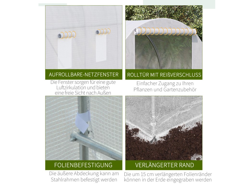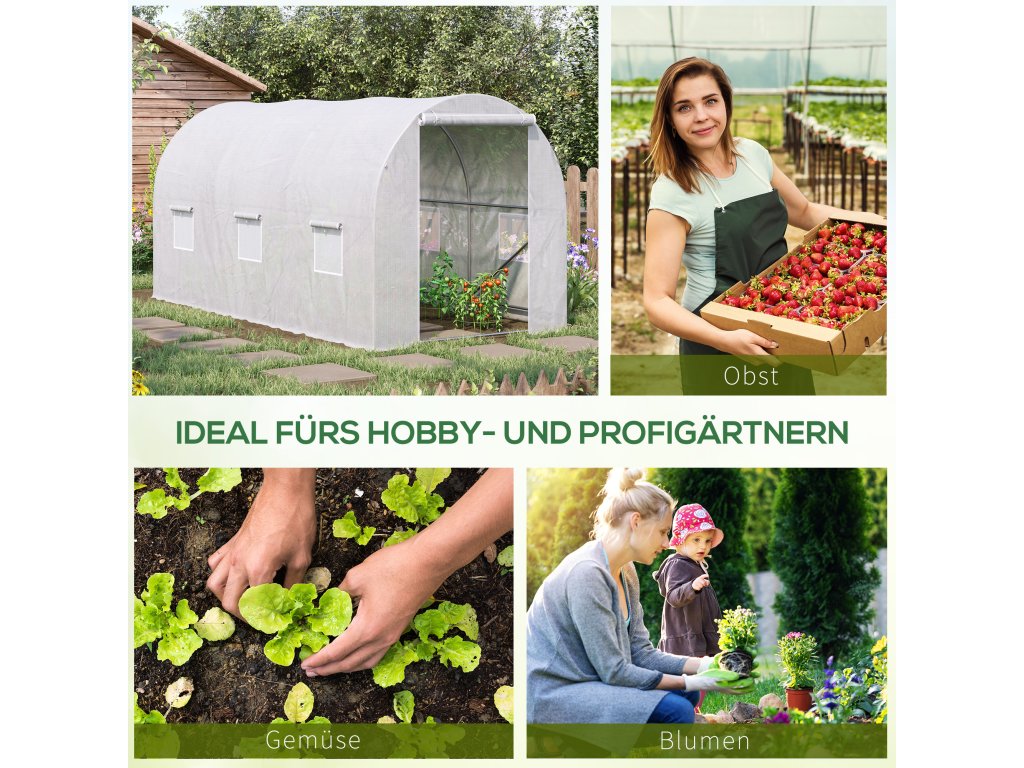 Outsunny skleník 350x200x200cm fóliový skleník na rajčata s dveřmi, oknem, tunel z pozinkované oceli, tunel na rostliny, skleník včetně kotevních lan, zahradní tunel, bílý